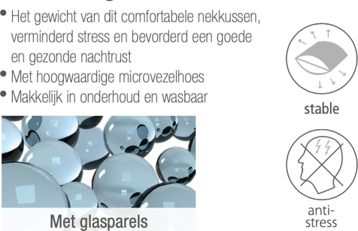 Het verzwaarde nekkussen van About Home geeft heerlijke diepe druk aan schouder en nekspieren. Het gewicht (2.5kg) van dit kussen vermindert stress door ‘Deep Pressure Therapy’ en bevorderd een goede en gezonde nachtrust. Daarnaast draagt de diepe druk doormiddel van de glasparels bij aan het beter kunnen concentreren, een betere prikkelverwerking en een betere ontspanning.