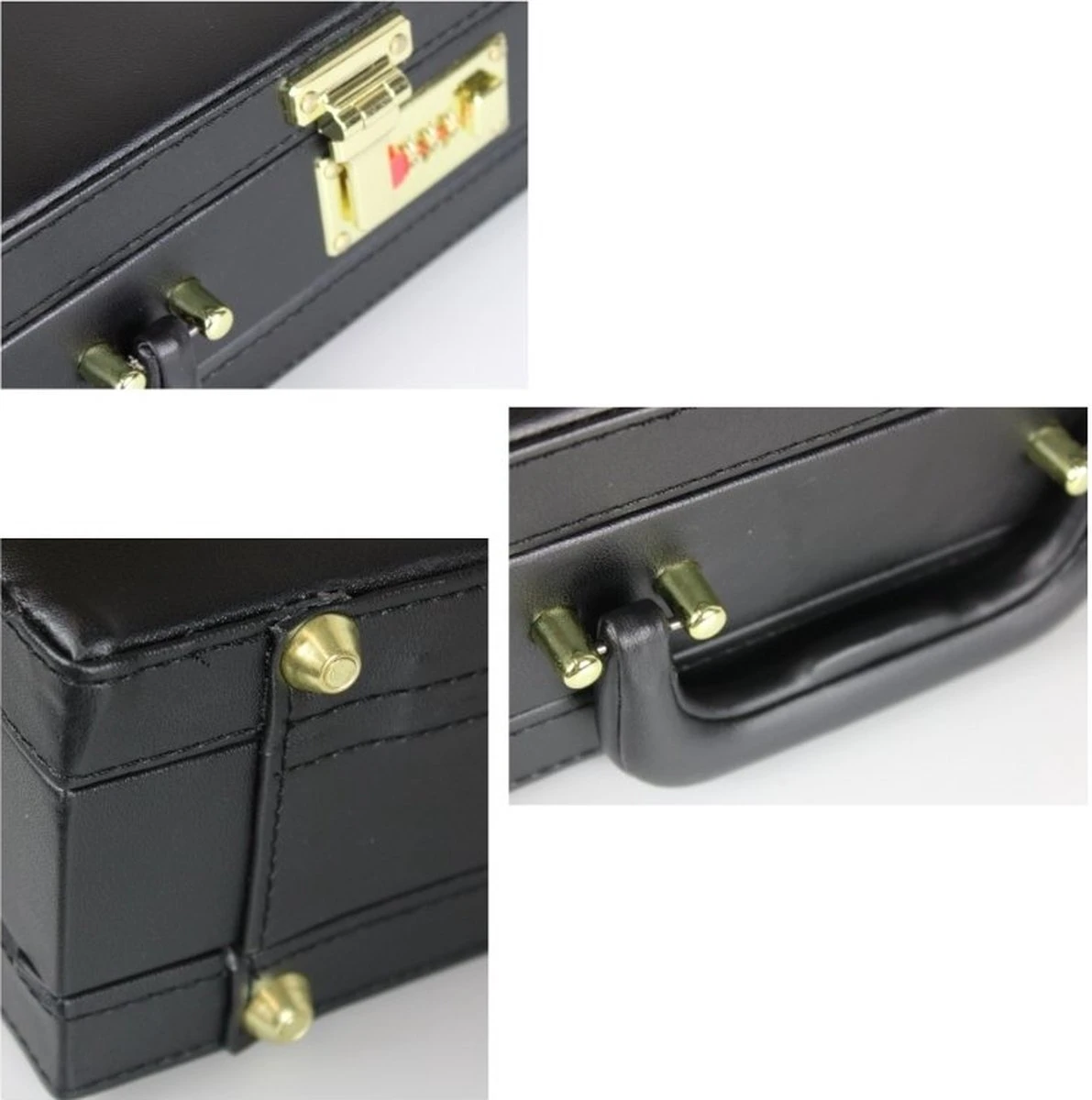 Attachรฉ koffer met luxe binnenkant en dubbele cijferslot. De binnenzijde van de deksel is voorzien van een uitgebreid verstelbare organiservak. De attachรฉ is geschikt voor A4 documenten,laptop en bevat diverse opbergmogelijkheden voor o.a. pennen en visitekaartjes. De koffer sluit af met een dubbel cijferslot die goudkleurig is. Het cijferslot kan eenvoudig gewijzigd worden, hier zit een beschrijving bij toegevoegd. Kortom een handige attache koffer met een zakelijke/luxe uitstraling.