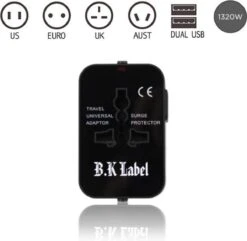 De B.K label universele wereldstekker is overal ter wereld te gebruiken! De reisstekker beschikt over twee snelle USB poorten waardoor je tot wel drie apparaten tegelijk kan gebruiken en/of opladen. De adapter is uitgerust met de beste veiligheidsfuncties waardoor deze gebruikt kan worden voor apparaten met een hoog wattage. Een must voor iedere reis! (Niet geschikt voor Zuid-Afrika)