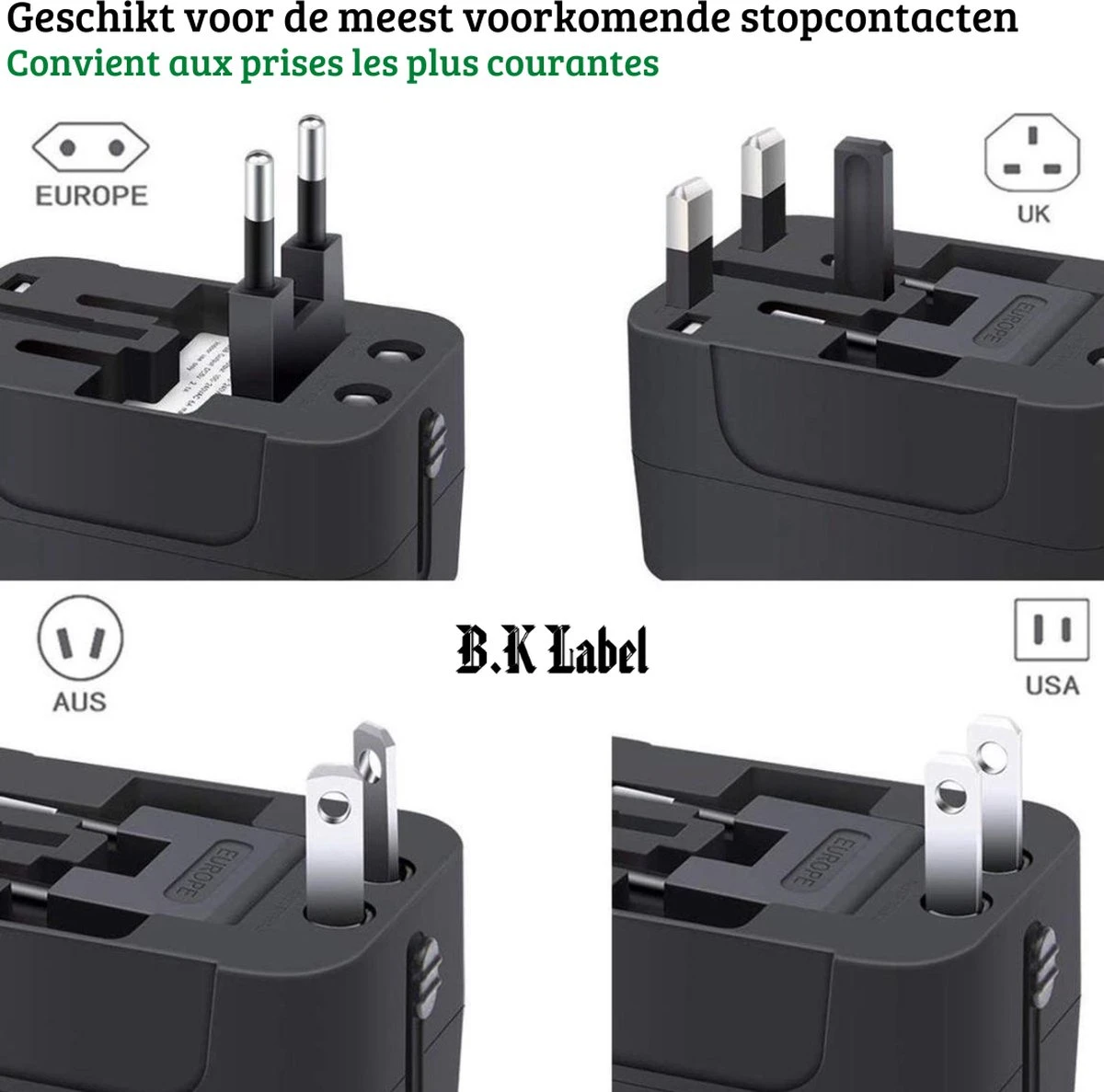 De B.K Label wereldstekker is te gebruiken in meer dan 150 landen!