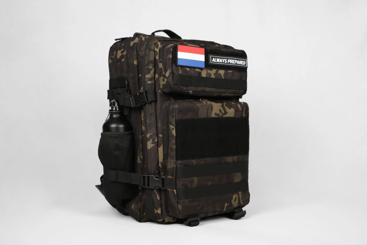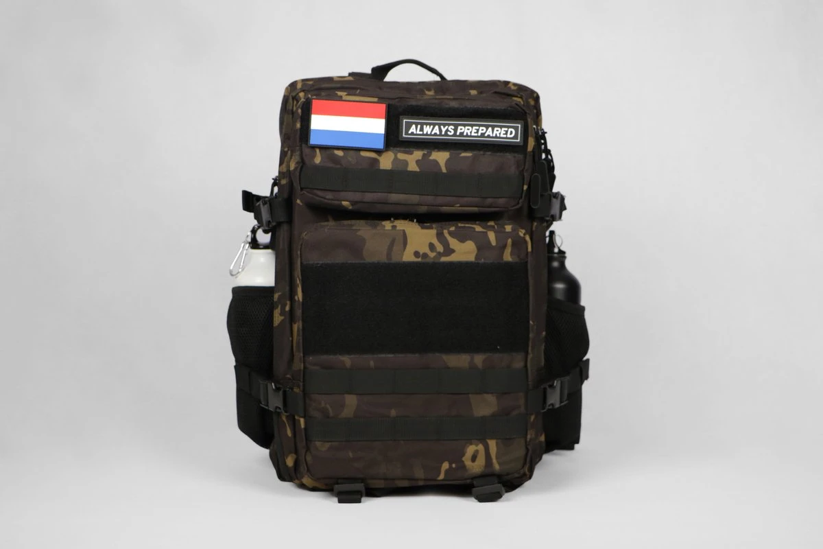 • Klittenbandstrips/vak om een patch toe te voegen (alle rugzakken worden standaard geleverd met patches van de Nederlandse vlag en Always Prepared die kunnen worden verwijderd)