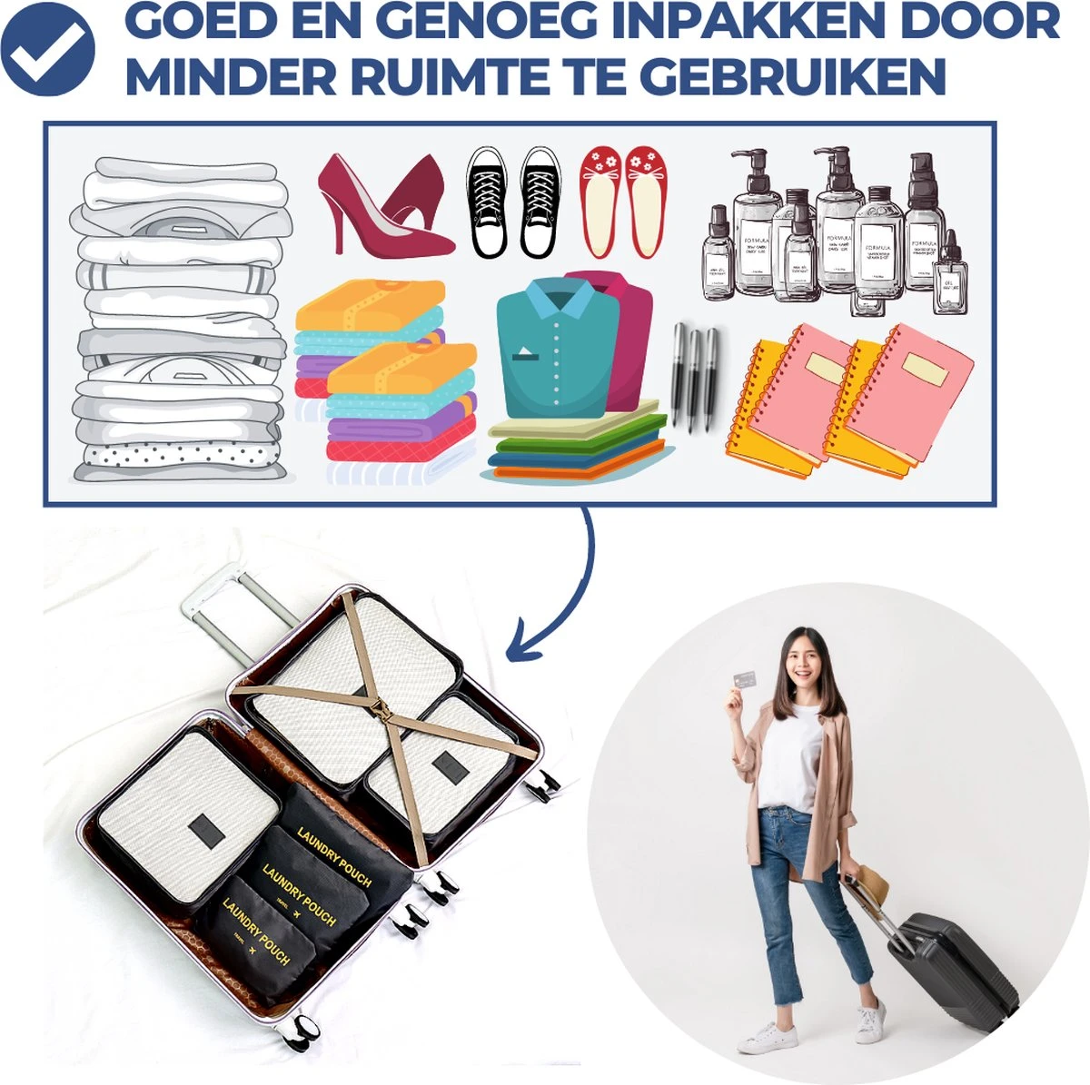 Door middel van deze packing cubes kun je de ruimte in jouw koffer of backpack beter nuttigen. Je houdt meer ruimte over en kunt dus nog meer spullen meenemen op reis! Dit werkt niet alleen voor koffers, maar ook voor backpacks en andere reistassen.