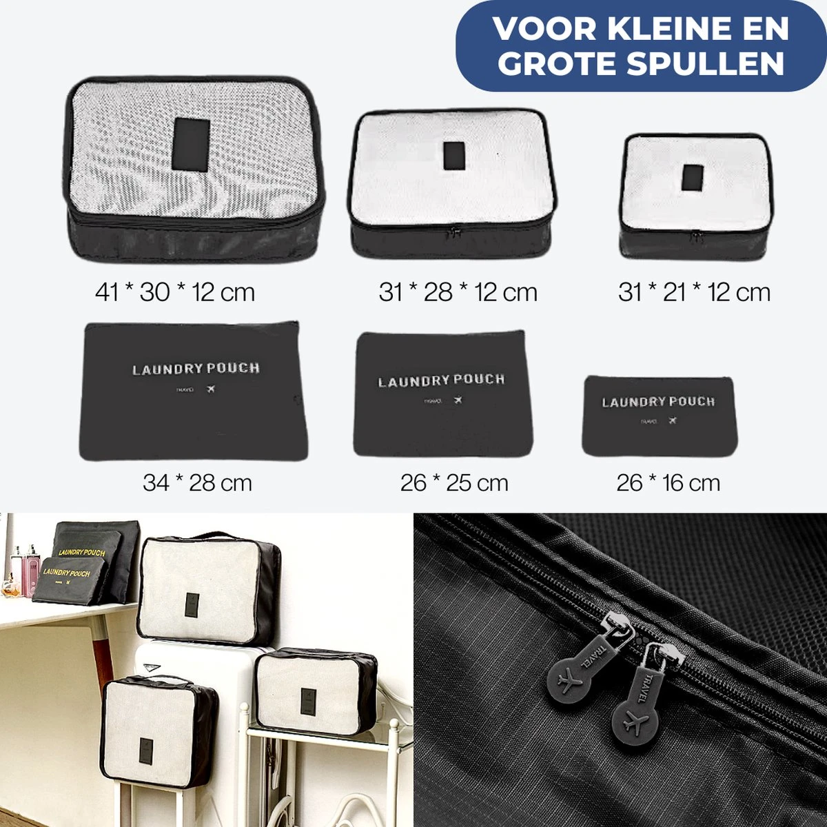 Door middel van de stevige rits van de packing cubes gaan ze erg lang mee! Deze rits is zo ontworpen dat hij erg soepel is en onverwoestbaar!