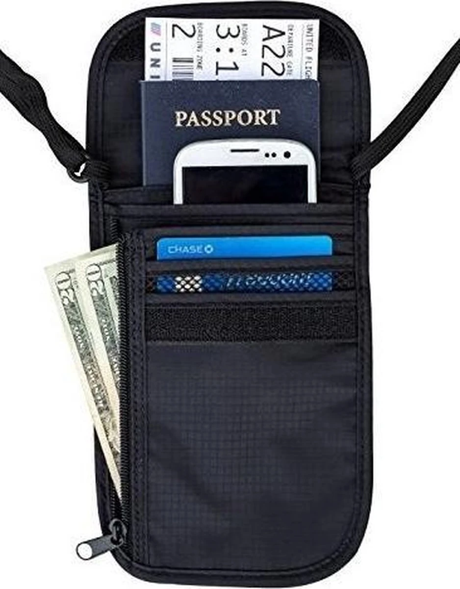 Benson Reisportemonnee/nektasje Zwart 14 X 17 Cm – Documenten Tasje Met Nekkoord – Nektas Voor Op Reis