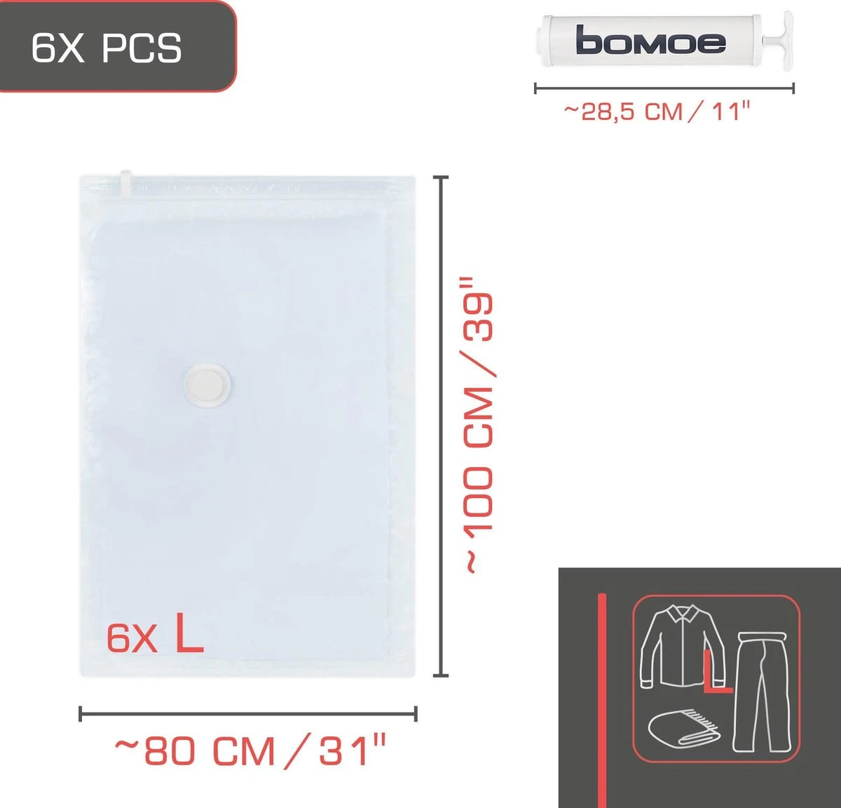 Bomoe vacuรผmzakken voor kleding en dekbedden Knippa – vacuรผmzakken kleding – herbruikbaar – 6x 80x100cm
