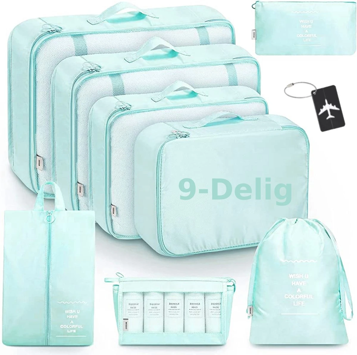 In de verpakking: 8 packing cubes+1 Aluminium bagagelabel