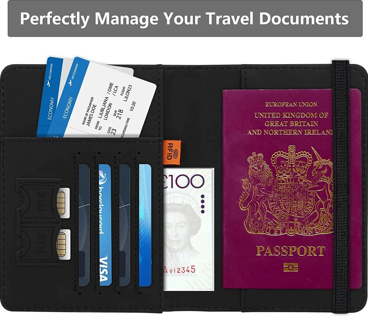 - De paspoort beschermhoes heeft 4 x kaartsleuven, 1 x paspoortvak, 1 x wisselgeldvak, 1 x ticketvak, 2 x simkaartsleuven voor voldoende paspoort, vaccinatiekaart, visitekaartjes, creditcards, instapkaarten. Deze paspoort portemonnee is uitgerust met een elastische band om uw documenten georganiseerd en veilig te houden zonder ze te verliezen.Verpakking: 1*Leren Paspoorthoes (zonder vaccinatiekaart).