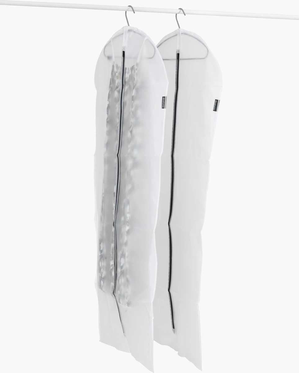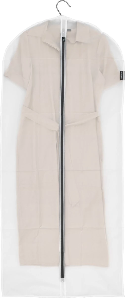 Op zoek naar een mooie oplossing om je jas of jurk mooi te houden? Dan is deze set van twee Brabantia kledinghoezen van 60 x 135 cm een perfect passende oplossing. De zachte, doorzichtige zakken met rits in maat L beschermen je kleding tegen stof en motten.