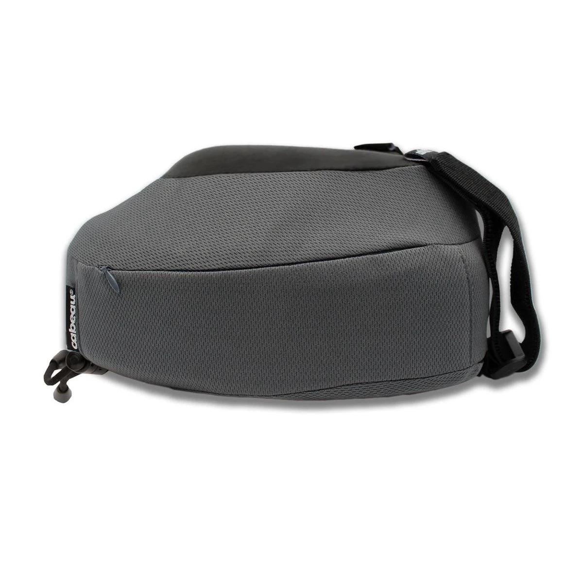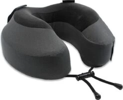 De nekkussens van Cabeau heeft een gepatendeerd ergonomisch ontwerp en zijn uitgerust met de nieuwste ontwikkelingen omtrent het comfort van nekkussens. Mede doordat het kussen aan de zijkanten hoger is en een extra opstaande laag heeft zorgt dat ervoor dat je minder last van je nek krijgt en je hoofd stabieler leunt op het kussentje. De koordjes onderaan kun je strakker maken zodat het nekkussen op zijn plaats blijft. Met het Seat Strap-systeem (S3) is dit het eerste kussen dat aan de vleugels van de vliegtuigstoel kan worden bevestigd en voorkomt op effectieve wijze dat uw hoofd naar voren of opzij valt. De riemen zijn verstelbaar om op verschillende hoogten te passen. De stof is sneldrogend en zit een zijvakje in met ritssluiting. De hoes kan in de wasmachine en het traagschuim kan met een vochtige doek schoongemaakt worden. Het nekkussen kan je zo klein opvouwen dat het past in het bijbehorende opbergtasje. De Evolution S3 is gewoonweg het beste reiskussen voor vliegtuigen, auto’s en gebruik thuis. Het nekkussen is niet geschikt voor kinderen onder de 14 jaar.