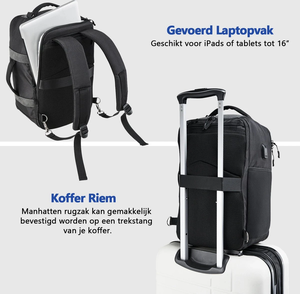 โก๏ธ De CabinMax Manhatten 20L is geschikt als weekendtas, rugzak en handbagage. Perfect om mee te reizen! De tas is stevig, waterproof en scheurbestendig. U kunt er al uw benodigde spullen in kwijt, is licht in gewicht, flexibel en uiterst functioneel! Door de steeds strenger wordende regels voor het meenemen van gratis handbagage aan boord, is het belangrijk om een tas mee te nemen op reis, die voldoet aan de afmetingen voor handbagage die onder de stoel geplaatst mag worden. Deze CabinMax rugzak voldoet aan deze eisen en beschikt toch over verrassend veel ruimte!