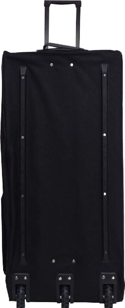Zeer grote wieltas met 3 wielen in kleur zwart. Op de voorzijde twee grote ritsvakken. Handvat en twee korte draagbanden.