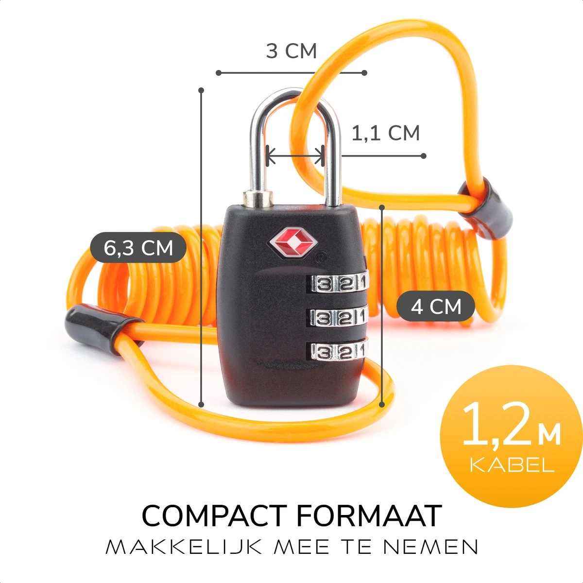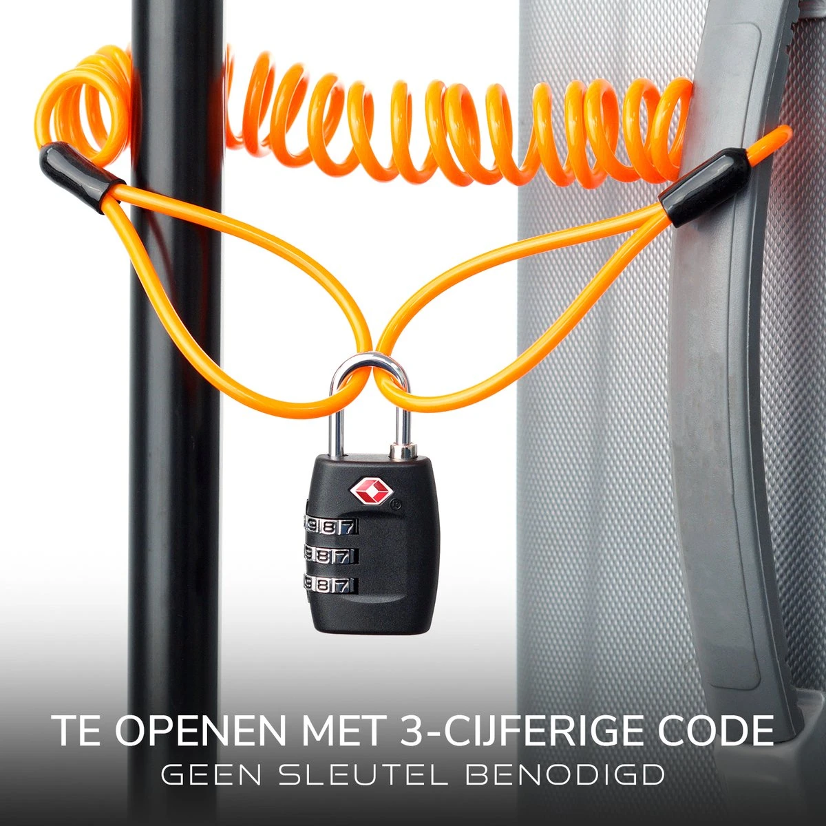 Met een kofferslot voorkom je dat iedereen zomaar je koffer kan openmaken. Het cijferslot bevestig je makkelijk aan bijvoorbeeld de rits van je koffer. Gebruik bij vliegreizen altijd een TSA slot. In combinatie met de staalkabel maak je je koffer of tas eenvoudig vast aan een vast object. Handig als je lang moet wachten op het station of vliegveld.
