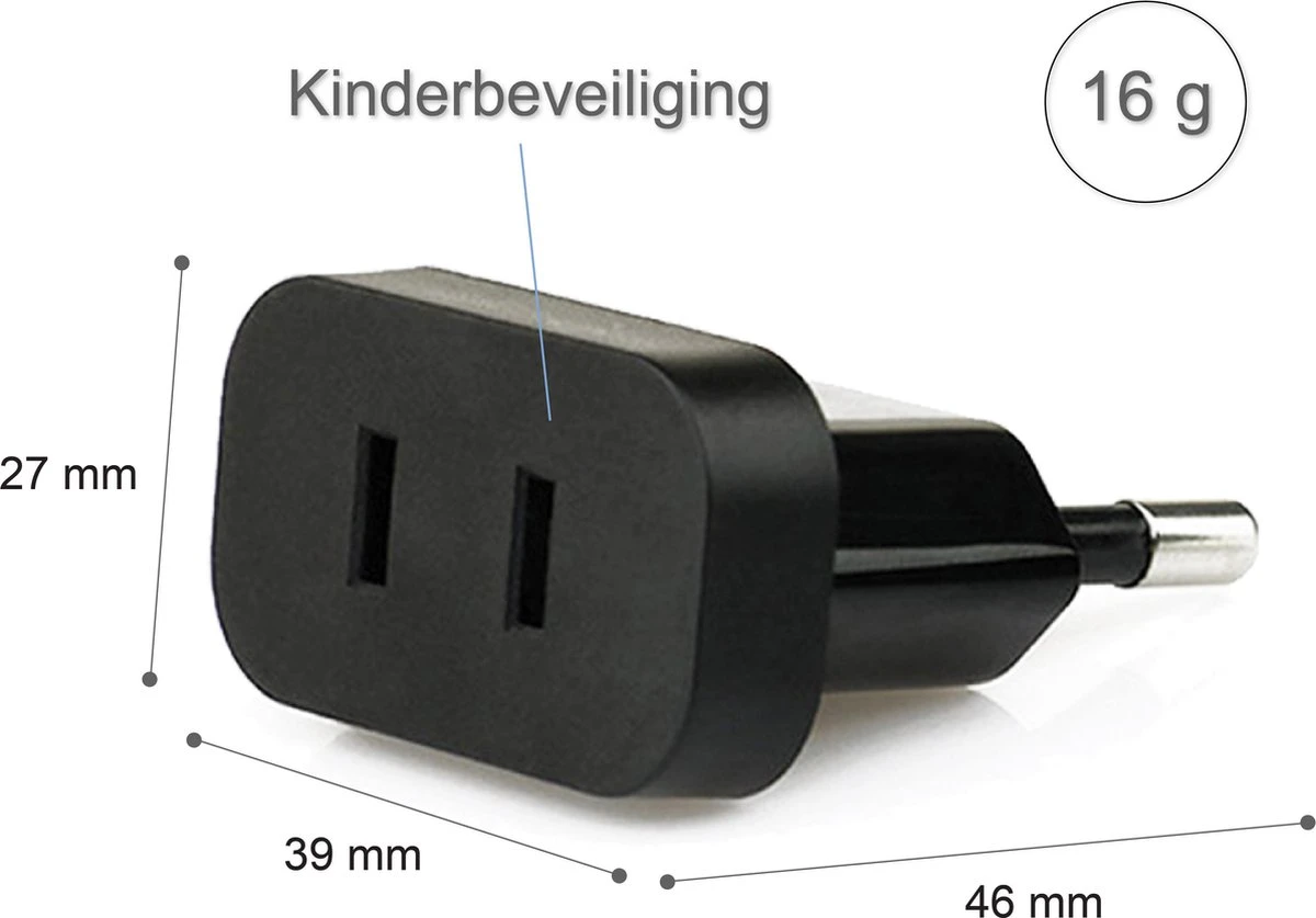 - Kenmerken: Hoge kwaliteit Reisstekker, duurzaam, USA naar EU, CN naar EU, vlamvertragend materiaal, Kinderbeveiliging, Gratis kabel-organizer.