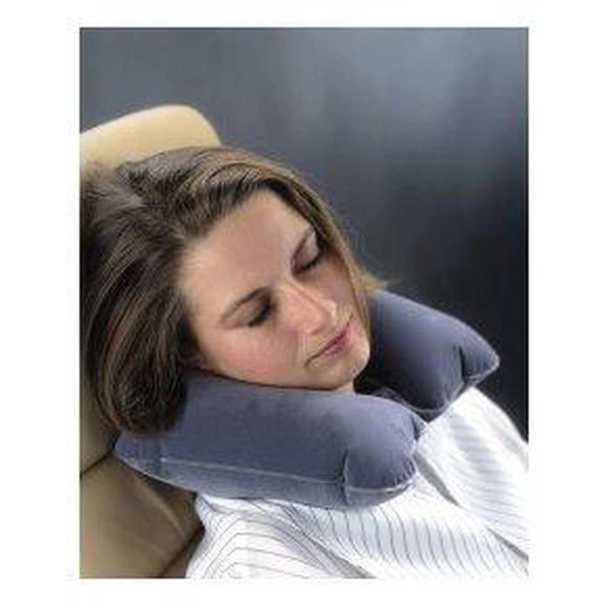 Confortabel Opblaasbaar Nekkussen Ideaal Voor Het Lange Reizen – Geschikt Voor Hoofd Nek – Rug – Benen – Of Kussen Slapen Tussen Uw Benen – Viegtuig – Auto – Boot – Zwart- Grijs
