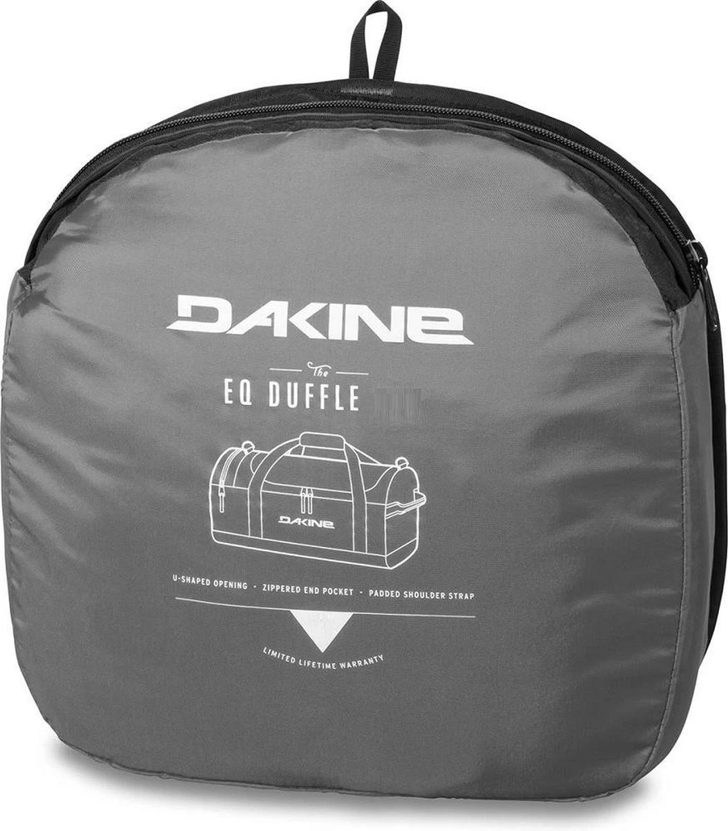 De Dakine EQ Duffle 70L is een duffel die ideaal is om mee te nemen tijdens een weekend weg of te gebruiken als sporttas. Het ruime hoofdvak is geschikt om kleding in op te bergen en in het extra vak met rits aan de zijkant kunnen kleine accessoires meegenomen worden. De U-opening zorgt ervoor dat de tas gemakkelijk in en uit te laden is. De schouderband is gevoerd en verwijderbaar. De tas is zeer klein op te vouwen en kan dan als klein pakketje worden dichtgeritst.