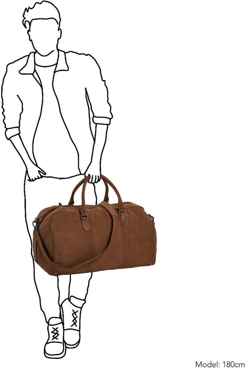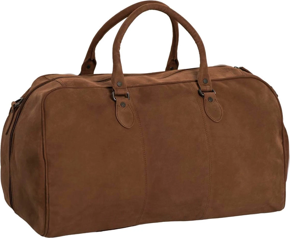 Mooie leren reistas van Daniel Ray. Tas heeft een groot hoofdvak dat afsluitbaar is met een rits. Tas is voorzien van twee korte handvatten en heeft een afneembare lange, verstelbare schouderband. Afmetingen: 30 x 52 x 30 cm.