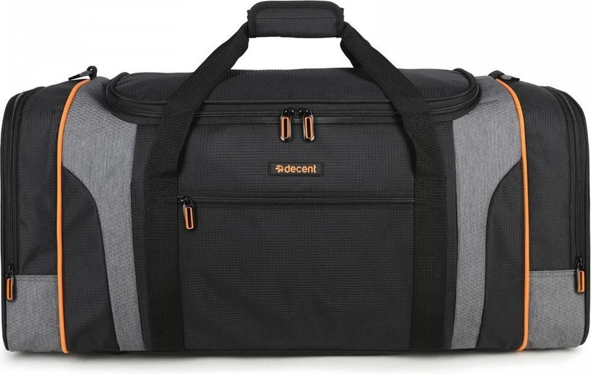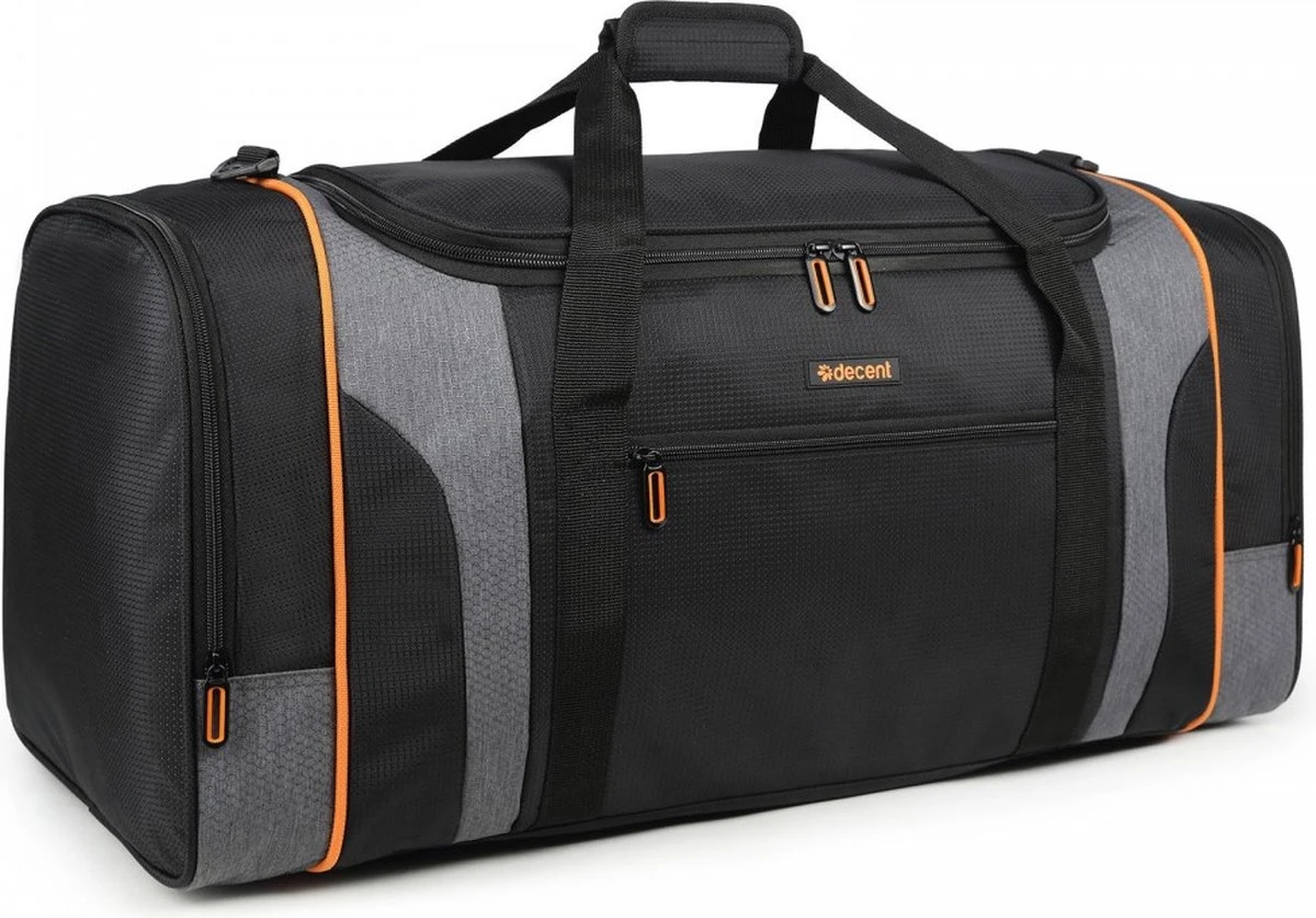 Grote reistas uit de Flexplus serie van Decent in kleur zwart met blauwe accenten. De reistas heeft twee korte draagbanden die samengebonden kunnen worden middels een band met klittenband. Het hoofdvak is te openen middels een U-vormige klep met ritssluiting. Naast het hoofdvak zit aan beide zijden een apart vak met ritssluiting. Handig voor het apart opbergen van bijv. toiletspullen of andere kleine reisaccessoires.
