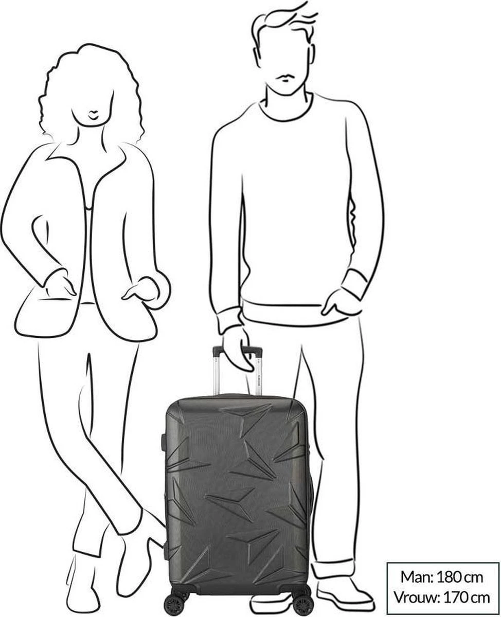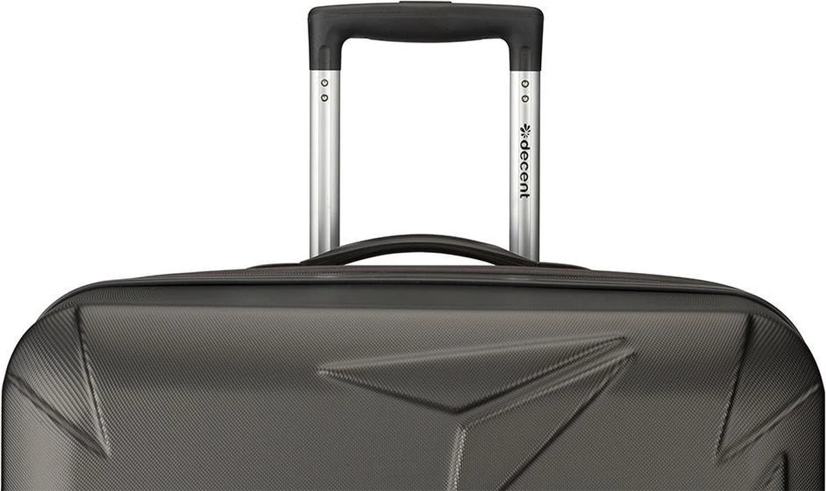 Door de vliegtuigen print en de frisse kleur grijs van deze Decent koffer is erg geschikt om mee te reizen! Door het ABS materiaal, wat een soort plastic is, is het een harde koffer met een inhoud van 70 liter. Door het TSA-cijferslot is het heel veilig reizen met deze koffer. Ook is het comfortabel reizen met de vier soepele wielen en het uitschuifbare trekstang. Binnenin vind je een ruim vak met inpakriem en afsluitbaar met een rits, daarnaast zijn er meerdere ritsvakken voor alle kleine spullen, hierdoor is ook alles makkelijk terug te vinden.