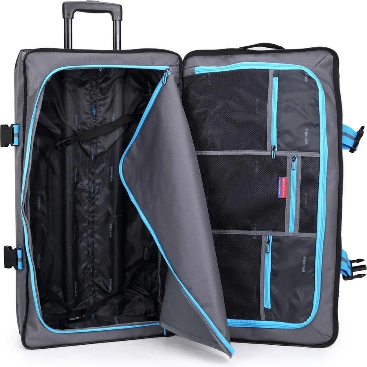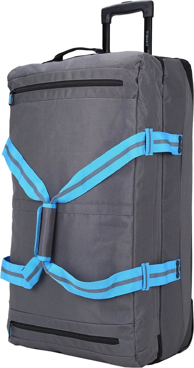 Grote wieltas uit de Sport-Line serie van Decent. De reistas heeft twee soepele wieltjes, een verstelbare trekstang en twee handvatten waardoor de tas gemakkelijk overal mee naar toe te nemen is. Aan de binnenzijde van de tas bevinden zich twee gescheiden compartimenten die worden afgesloten met een rits. Binnenin zitten tevens veel ritsvakjes voor het overzichtelijk opbergen van kleine reisaccessoires. Op de voorzijde van de tas zitten twee ritsvakken. De spanbanden aan de zijkanten maken het mogelijk om bagage zo compact mogelijk te maken. Thuis is de reistas makkelijk plat te maken en op te bergen.