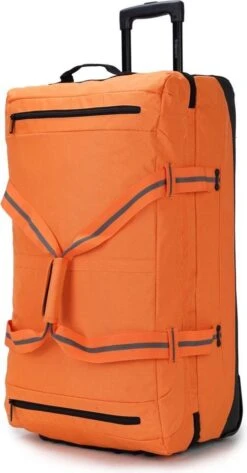 Grote wieltas uit de Sport-Line serie van Decent. De reistas heeft twee soepele wieltjes, een verstelbare trekstang en twee handvatten waardoor de tas gemakkelijk overal mee naar toe te nemen is. Aan de binnenzijde van de tas bevinden zich twee gescheiden compartimenten die worden afgesloten met een rits. Binnenin zitten tevens veel ritsvakjes voor het overzichtelijk opbergen van kleine reisaccessoires. Op de voorzijde van de tas zitten twee ritsvakken. De spanbanden aan de zijkanten maken het mogelijk om bagage zo compact mogelijk te maken. Thuis is de reistas makkelijk plat te maken en op te bergen.