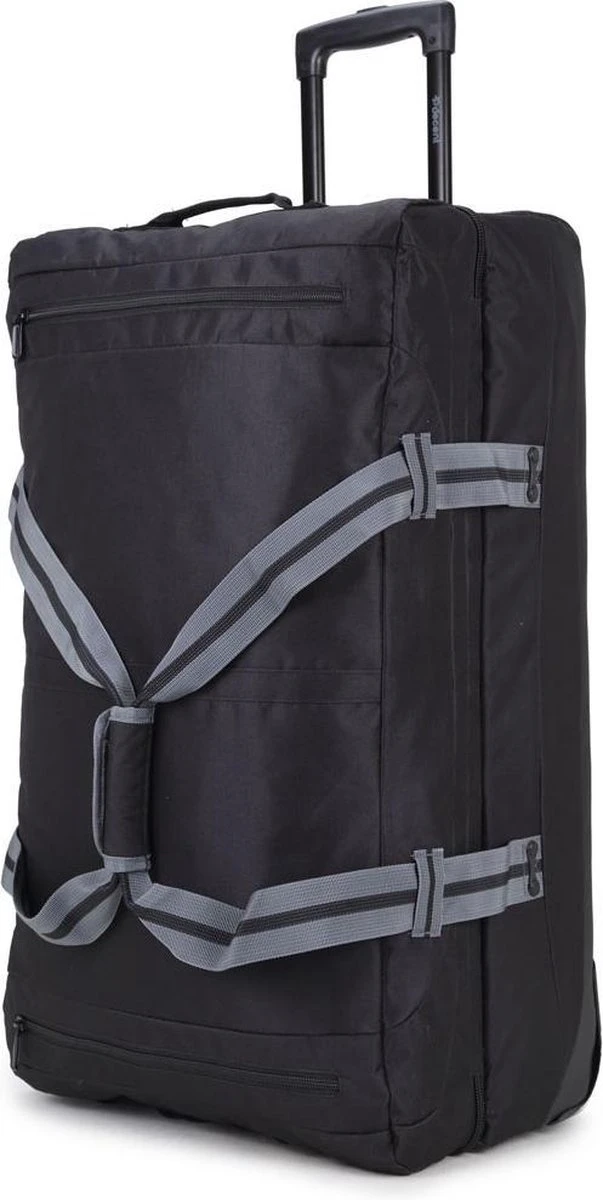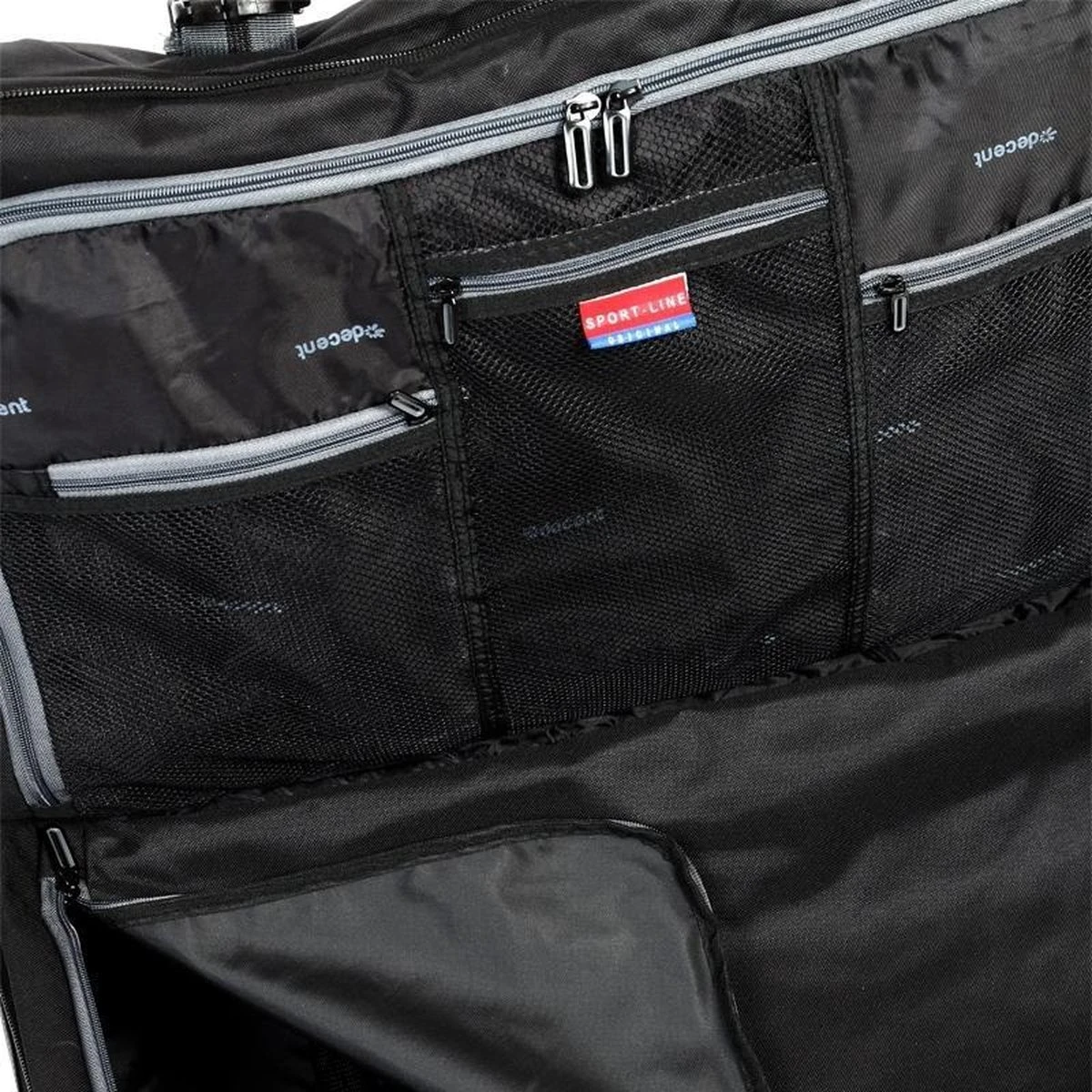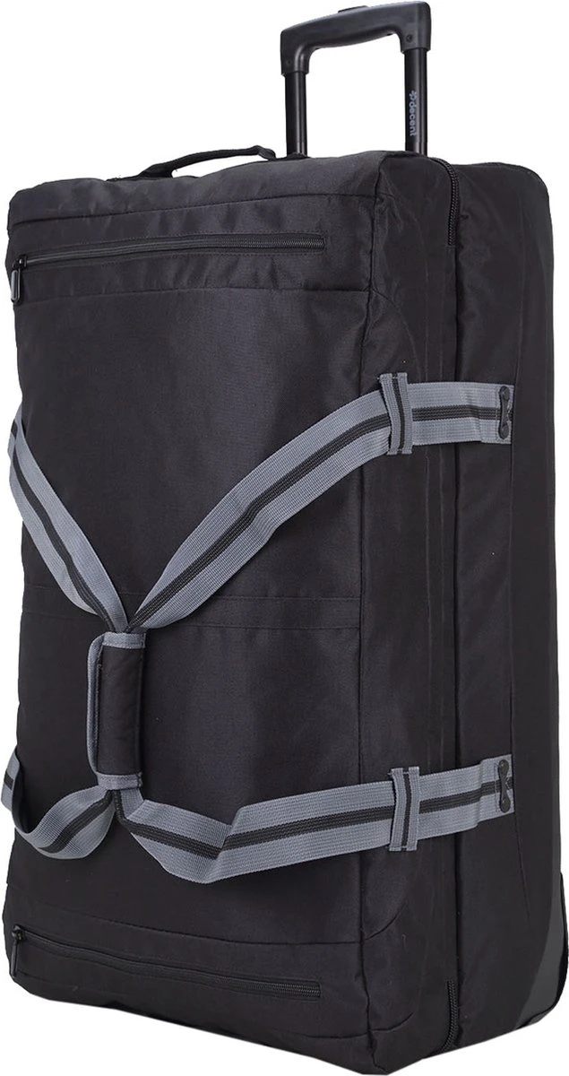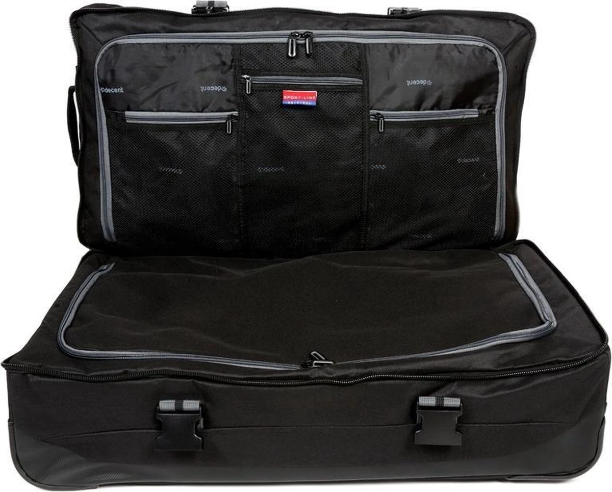 Grote wieltas uit de Sport-Line serie van Decent. De reistas heeft twee soepele wieltjes, een verstelbare trekstang en twee handvatten waardoor de tas gemakkelijk overal mee naar toe te nemen is. Aan de binnenzijde van de tas bevinden zich twee gescheiden compartimenten die worden afgesloten met een rits. Binnenin zitten tevens veel ritsvakjes voor het overzichtelijk opbergen van kleine reisaccessoires. Op de voorzijde van de tas zitten twee ritsvakken. De spanbanden aan de zijkanten maken het mogelijk om bagage zo compact mogelijk te maken. Thuis is de reistas makkelijk plat te maken en op te bergen.