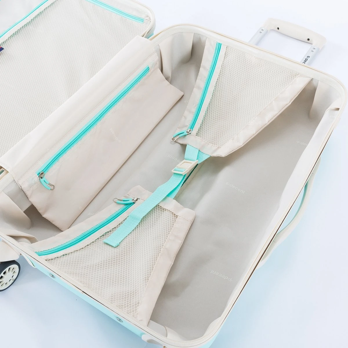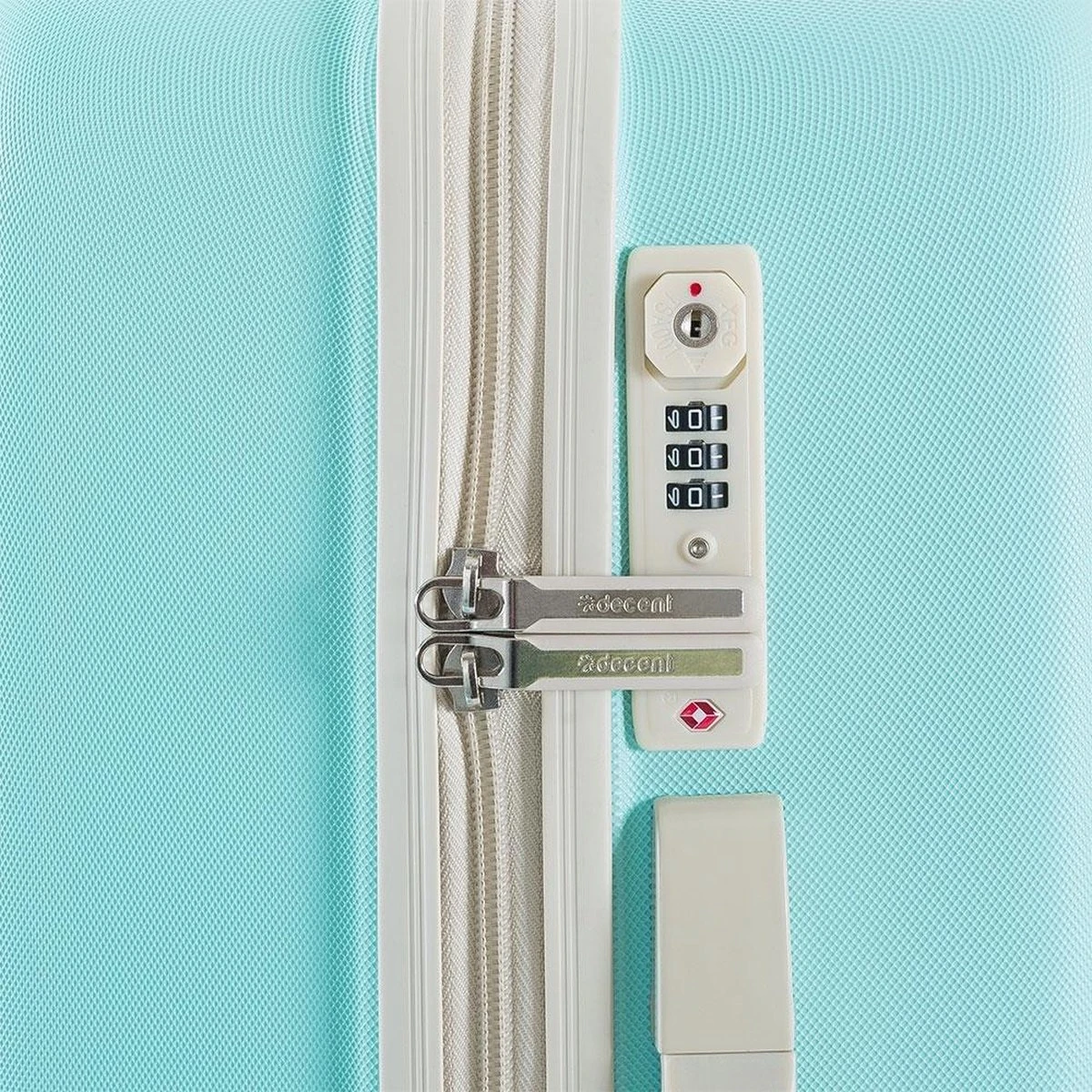 Hardschalen ABS handbagage koffer in mooie pastel kleur. Koffer is voorzien van een rits rondom die op slot te zetten is middels een vast cijferslot op de zijkant van de koffer. Binnenin gevoerd en voorzien van meerdere insteek- en ritsvakken voor het overzichtelijk opbergen van uw bagage.