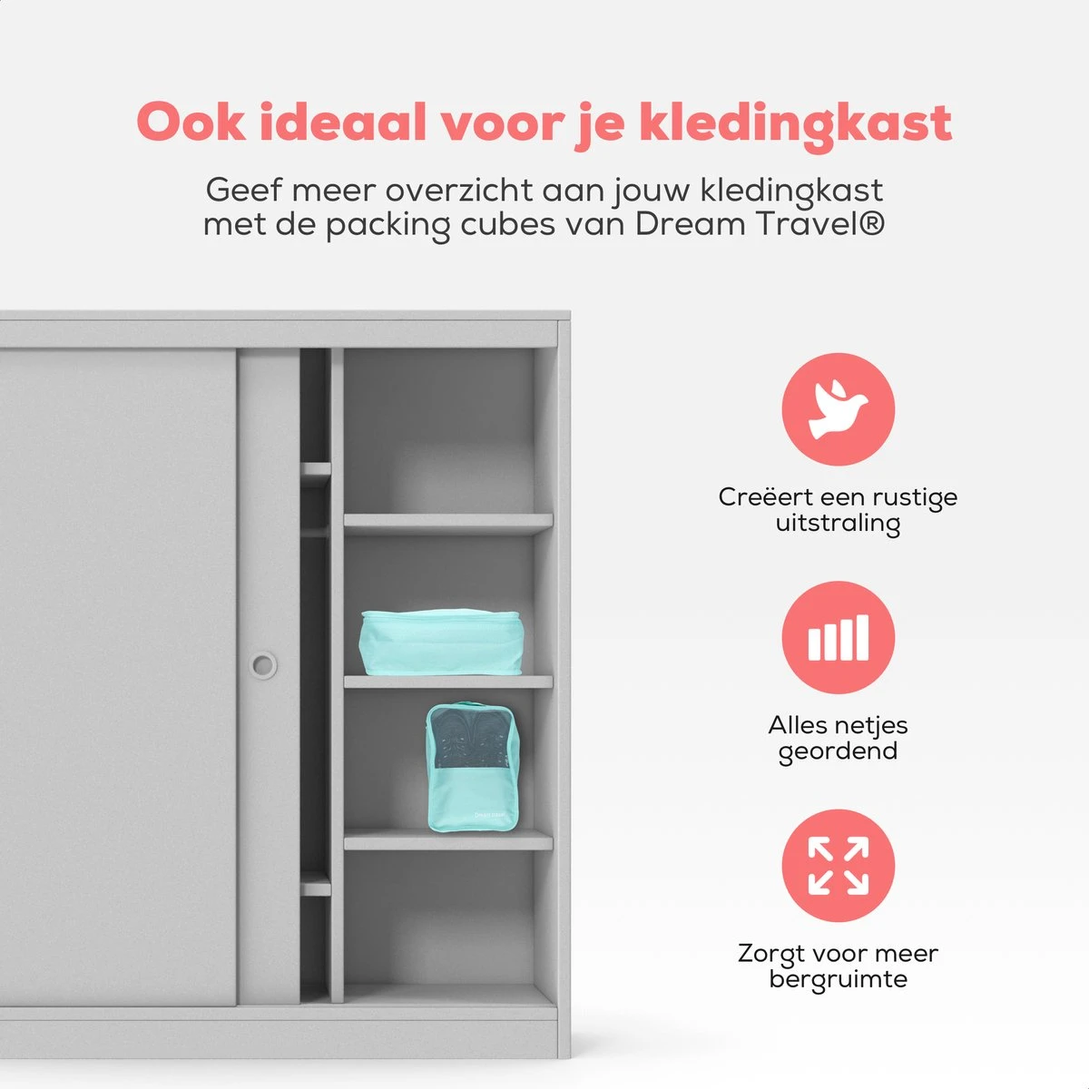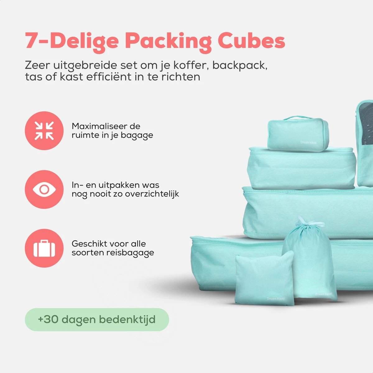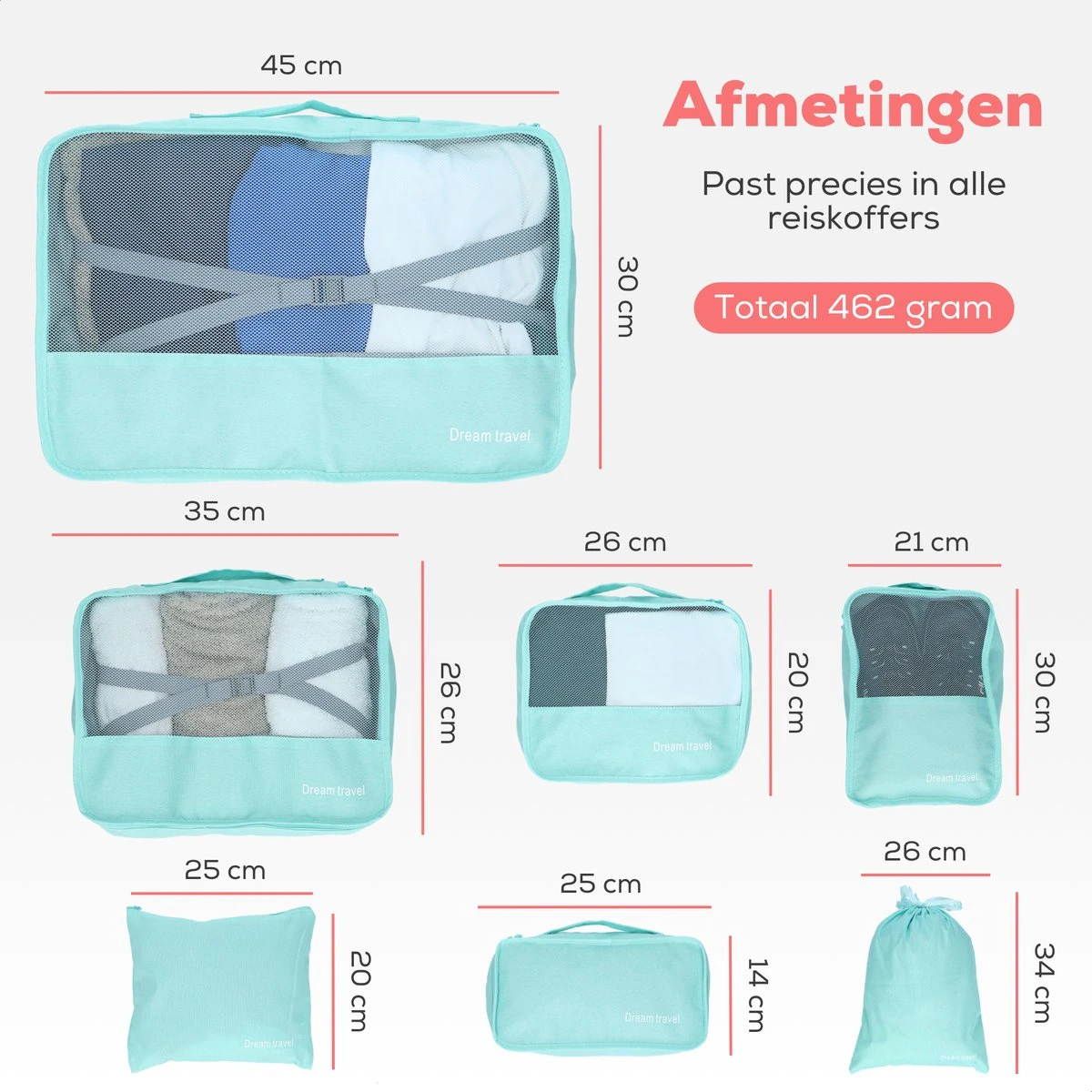 DreamTravel packing cubes organiser set van 7 – mintgroen