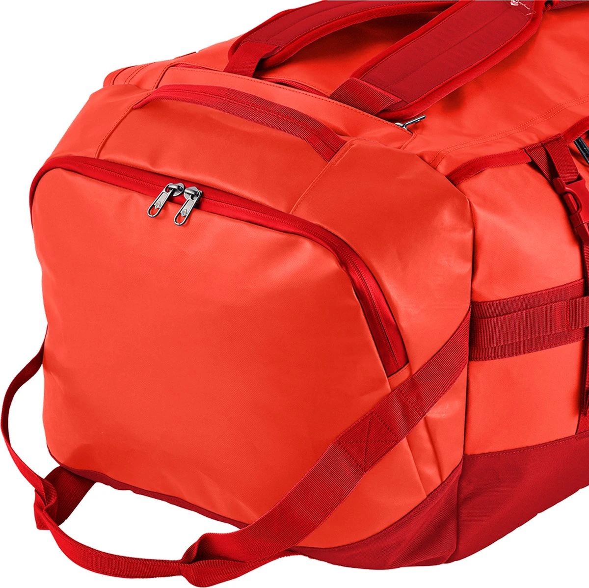 Je bagage kan eenvoudig in het hoofdcompartiment met een inhoud van 130 liter worden ingepakt. Het is zelfs mogelijk om je natte regenjas even onder de buitenste banden van de duffel te schuiven. De buitenste compressiebanden passen zich aan de inhoud van de reistas aan en houden je spullen goed bij elkaar. De ritsen zijn centraal te vergrendelen met een los verkrijgbaar slot.