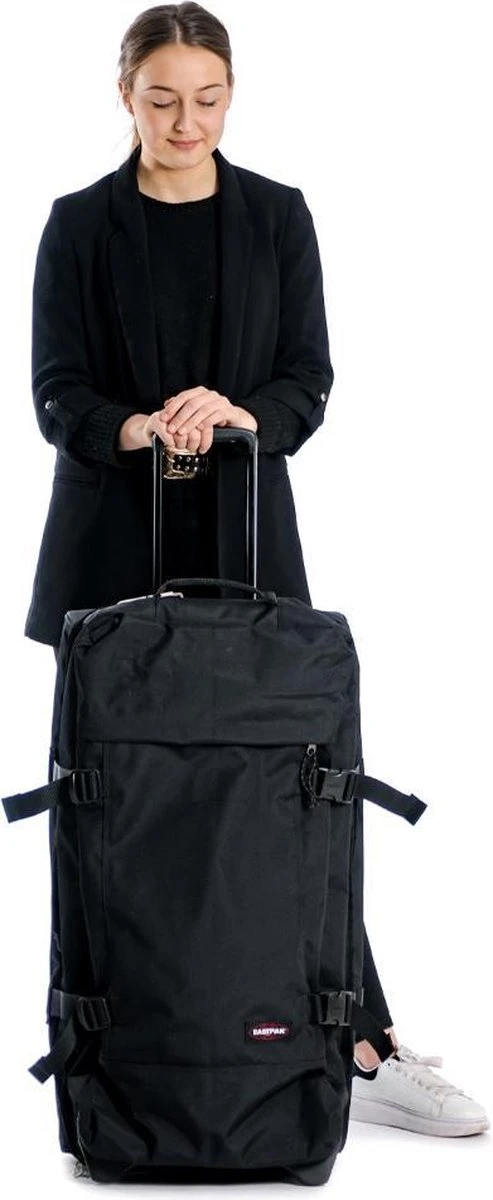 Met deze koffer van Eastpak uit de Tranverz L collectie heb je zeker weten genoeg ruimte voor al jouw vakantieoutfits! De tas sluit met een ritssluiting en heeft een TSA-slot, dus je spullen zitten ook nog eens veilig. De koffer heeft een uitschuifbare trekstang en twee wielen waardoor je hem gemakkelijk overal mee naartoe kan nemen. Mocht je een keer wat minder meenemen kun je het volume van de koffer aanpassen door de compressiebanden aan de zijkant. De koffer heeft รฉรฉn ritsvak en รฉรฉn steekvak, hierdoor krijgen ook de kleinere essentials een mooi plekje.