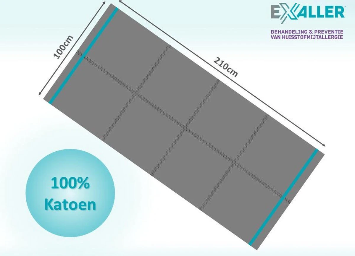 OPGELET: Eén ExAller-textiel dekt 1 eenpersoonsmatras (100 x 210). Twee eenheden zijn dus nodig voor de behandeling van een tweepersoonsbed.