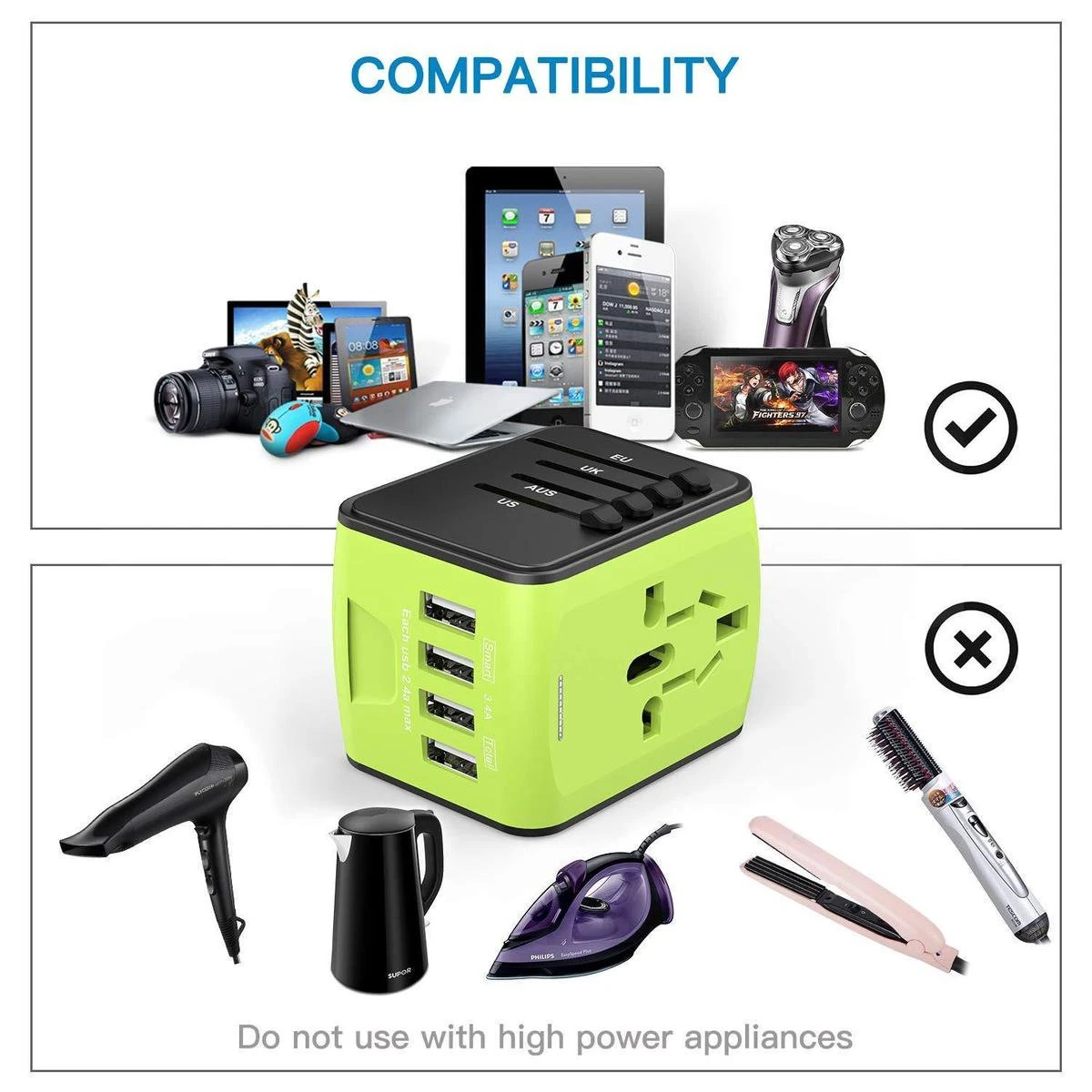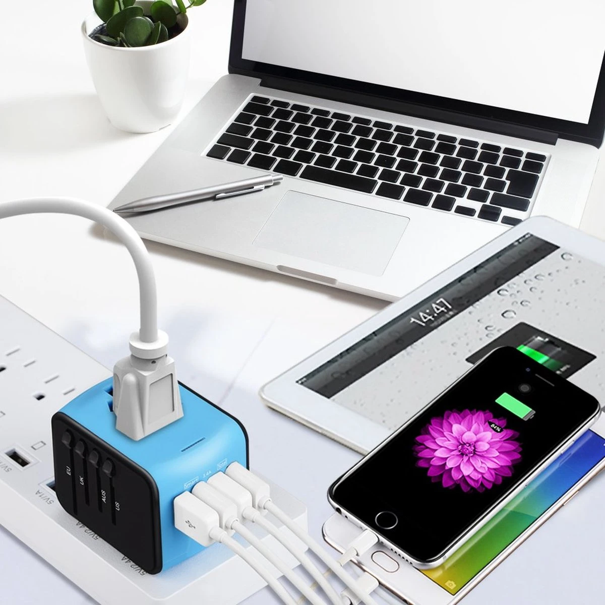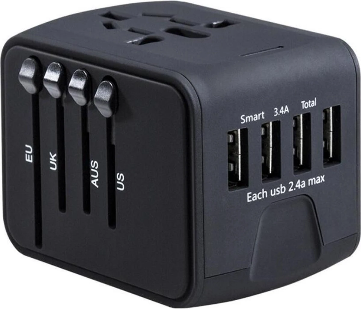 Denk bijvoorbeeld aan telefoons, laptops, camera’s, e-readers en nog veel meer. De reisadapter bevat 4 USB-poorten, hierdoor kun je tot wel drie apparaten in 1 keer kunt opladen.