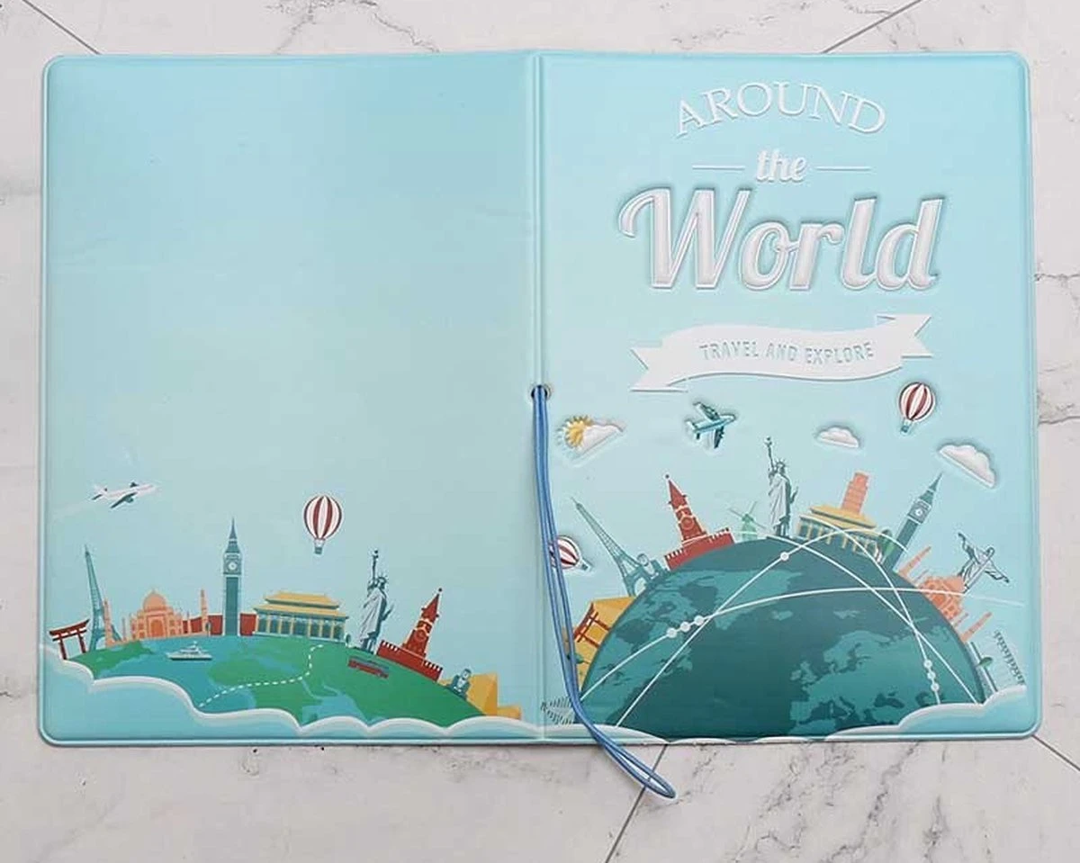 Leuk paspoort hoesje met de afbeeldingen van kenmerkende gebouwen van de wereld erop, om uw paspoort te beschermen.