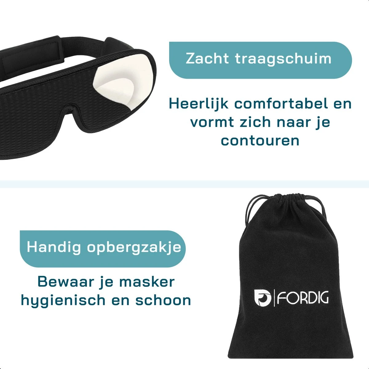 ForDig Ergonomische 3D Slaapmasker – 100% Verduisterend Oogmasker Incl. Opbergetui – Ademend Traagschuim Slaap Masker – Verstelbaar Oog Blinddoek – Nachtmasker Slapen – Blauw