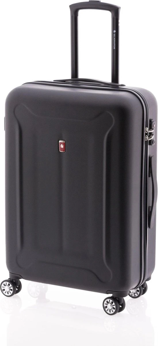 Middelgrote hardschalen, ABS koffer uit de Beetle serie van Gladiator in kleur zwart. Koffer is voorzien van een ritssluiting rondom die op slot te zetten is middels een vast TSA cijferslot op de zijkant van de koffer. Binnenin gevoerd en voorzien van een tussenschot met ritssluiting en spanbanden. Handvat op boven- en zijkant en voorzien van comfortabel 4-wiel systeem.