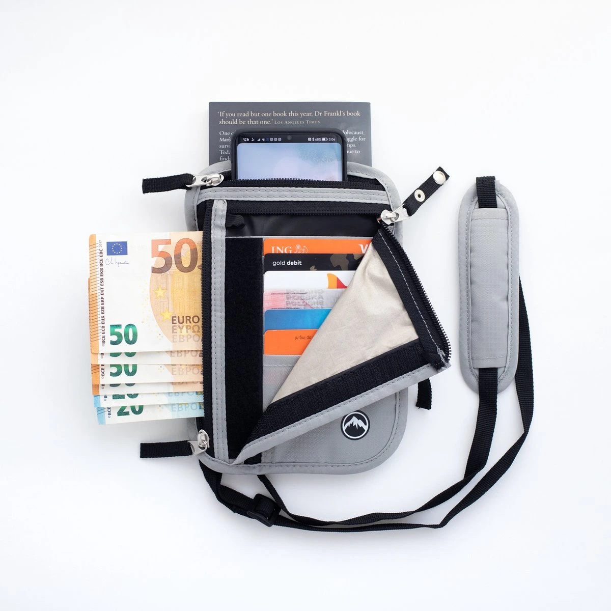 Groene Berg Nektasje – Reistas – Paspoorthouder Met RFID Blokkering – Reisportemonnee – Lichtgrijs