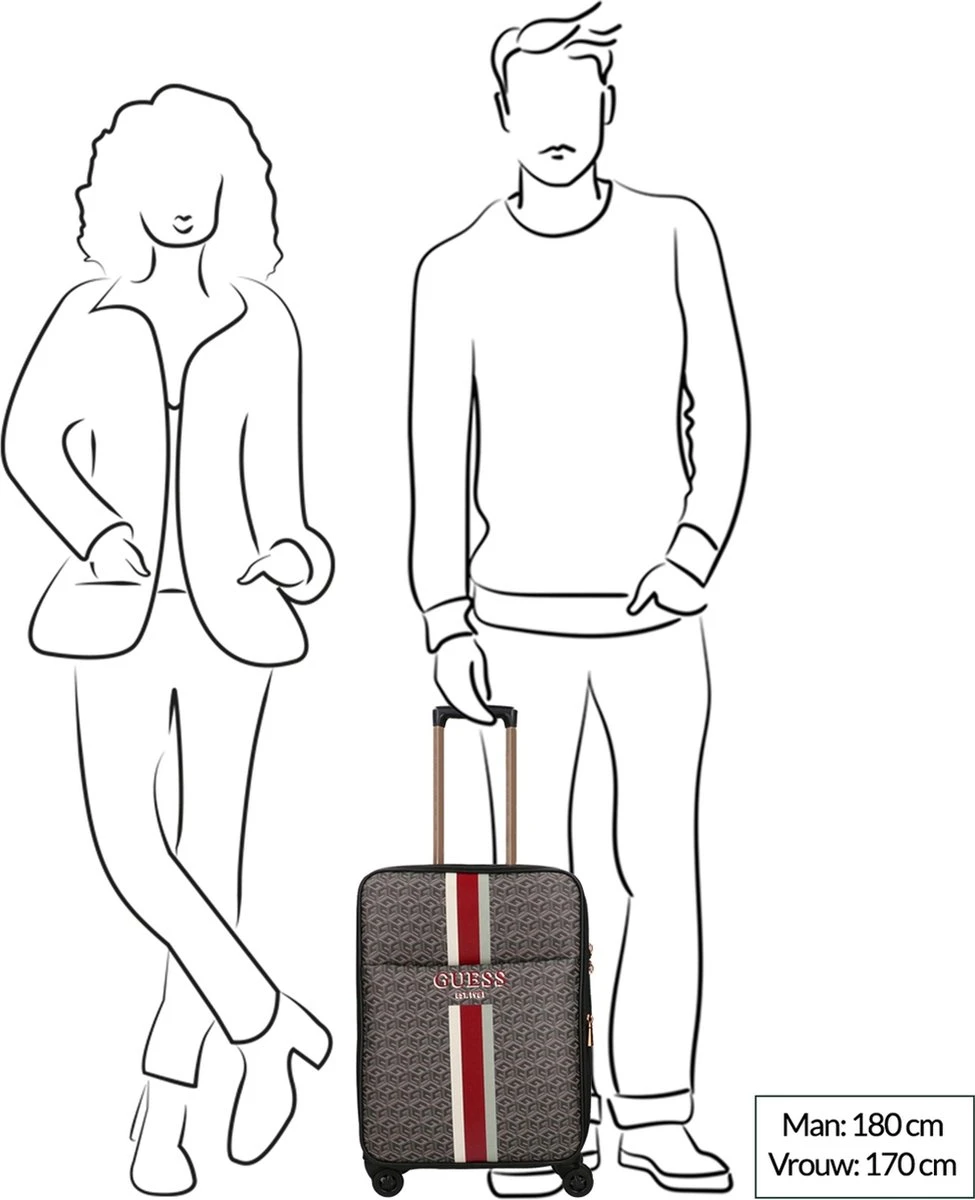 Op zoek naar de perfecte koffer om al je spullen in mee te nemen? Dan is deze Guess Vikky koffer misschien wel de perfecte keuze voor jou. Deze koffer is geschikt voor al jouw spullen tijdens je volgende (lange) vakantie of zakenreis. De zachte koffer is een ruimbagage koffer, wat betekent dat je deze koffer niet mee mag nemen in het vliegtuig als handbagage, maar ingecheckt dient te worden als ruimbagage. Deze zachte koffer is gemaakt van imitatie leer en je krijgt een fabrieksgarantie van 1 jaar op deze koffer. De koffer heeft 4 wielen; koffers met 4 wielen hebben meer stabiliteit en zijn wendbaarder dan koffers met 2 wielen. **De ideale koffer voor een reis van 1-2 weken** Deze zachte koffer heeft een capaciteit van 56 liter. Dit maakt deze koffer tot je ideale metgezel voor een vakantie met een duur van ongeveer รฉรฉn tot maximaal twee weken.**Waarom een zachte koffer?** De Guess Vikky is een zachte koffer. Ten opzichte van harde koffers hebben koffers met een zachte schaal een aantal voordelen. Ze zijn minder gevoelig voor krassen en ze zijn flexibeler. Door de flexibiliteit zijn deze koffers geschikter voor gebruik in je kofferbak of in het openbaar vervoer. Daarnaast hebben veel zachte koffers aan de buitenkant nog รฉรฉn of meerdere opbergvakken, waardoor je makkelijk bij je belangrijke papieren, je vliegticket of je paspoort kunt.
