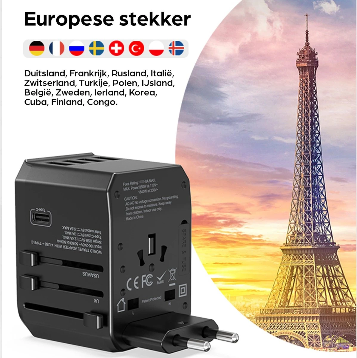 De universele wereldstekker is onder andere te gebruiken in: