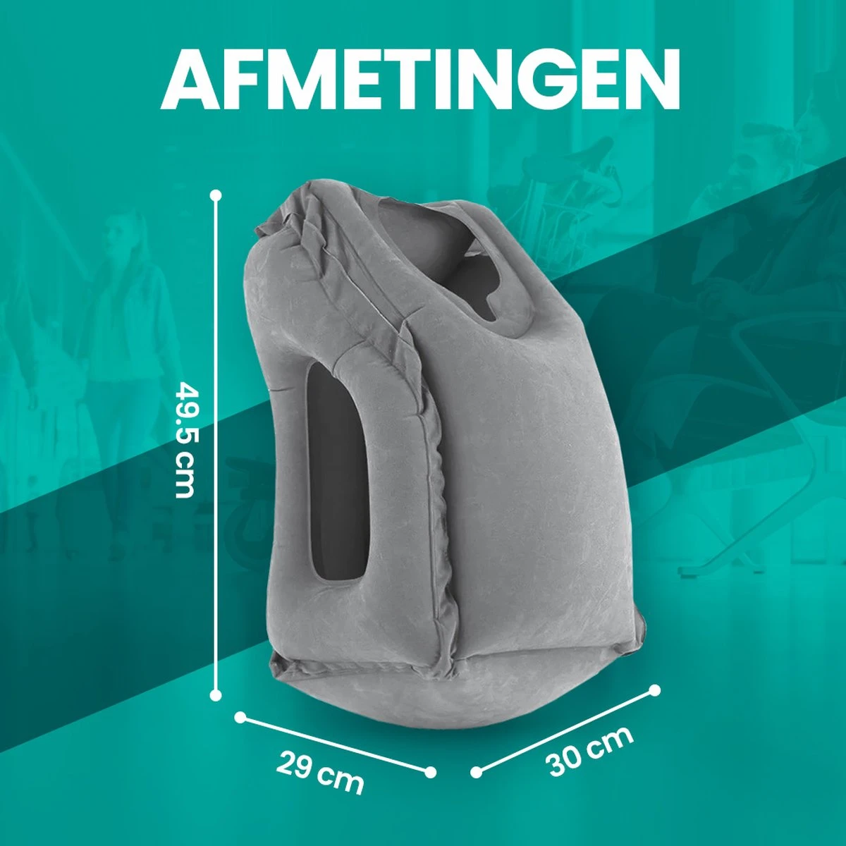 Of je nou met de trein, de auto of het vliegtuig reist. Ons kussen is geschikt voor ieder type reis. Creëer een moment van rust voor jezelf waar je ook bent. Met 5x blazen is het kussen al vol en na 5 seconden leeglopen is het kussen alweer leeg.