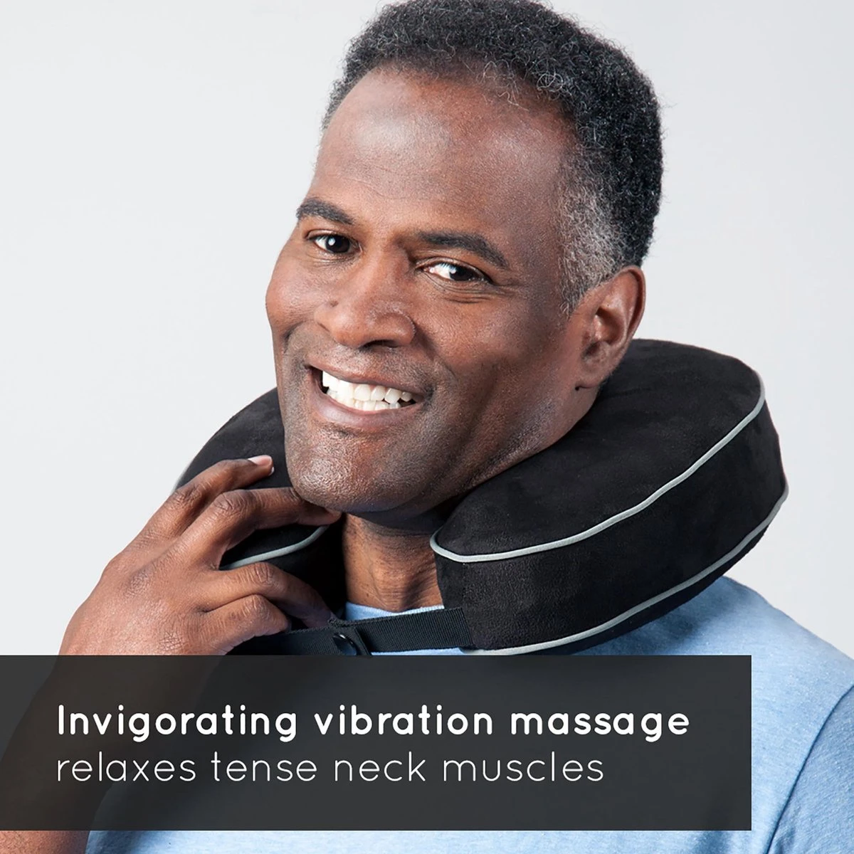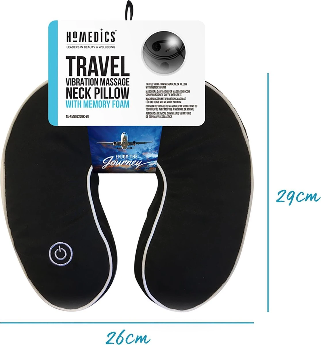 HoMedics Mobile Comfort ™ Traagschuim Nekkussen & Vibratiemassager maken reizen comfortabeler. Een zacht ontwerp van traagschuim biedt ondersteuning en comfort, terwijl de verkwikkende vibratiemassage-instelling gespannen nekspieren ontspant. Twee snelheden van laag of hoog zorgen voor een aanpasbare ervaring. Een afneembare, wasbare hoes betekent dat u elke keer dat u op reis gaat kunt genieten van een fris, schoon kussen. Om uw stimulator van stroom te voorzien, schuift u gewoon 2xAA-batterijen in. Als bonus wordt er een paar oordopjes meegeleverd voor extra reiscomfort.
