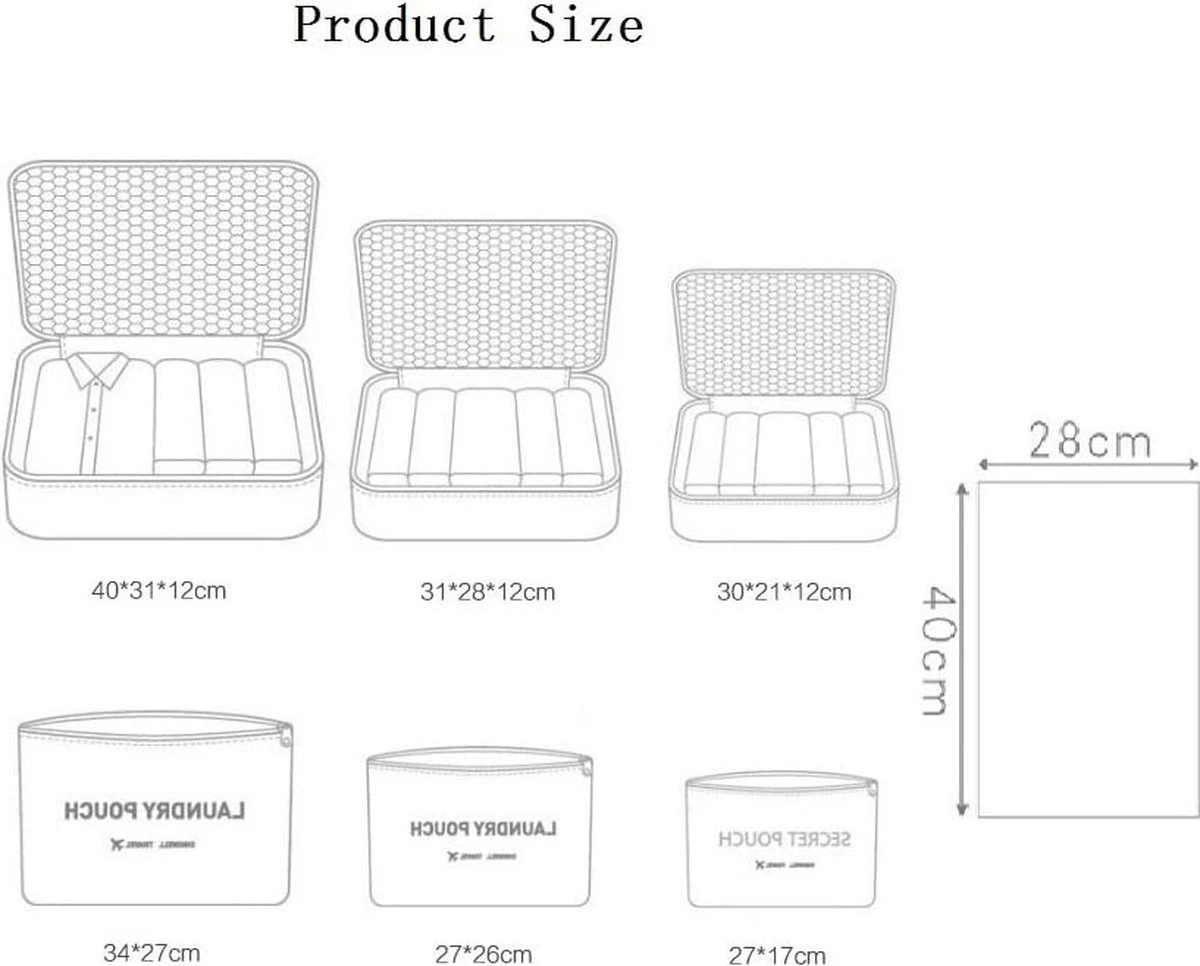Packing cubes 7-delige set bagage organizer Zwart