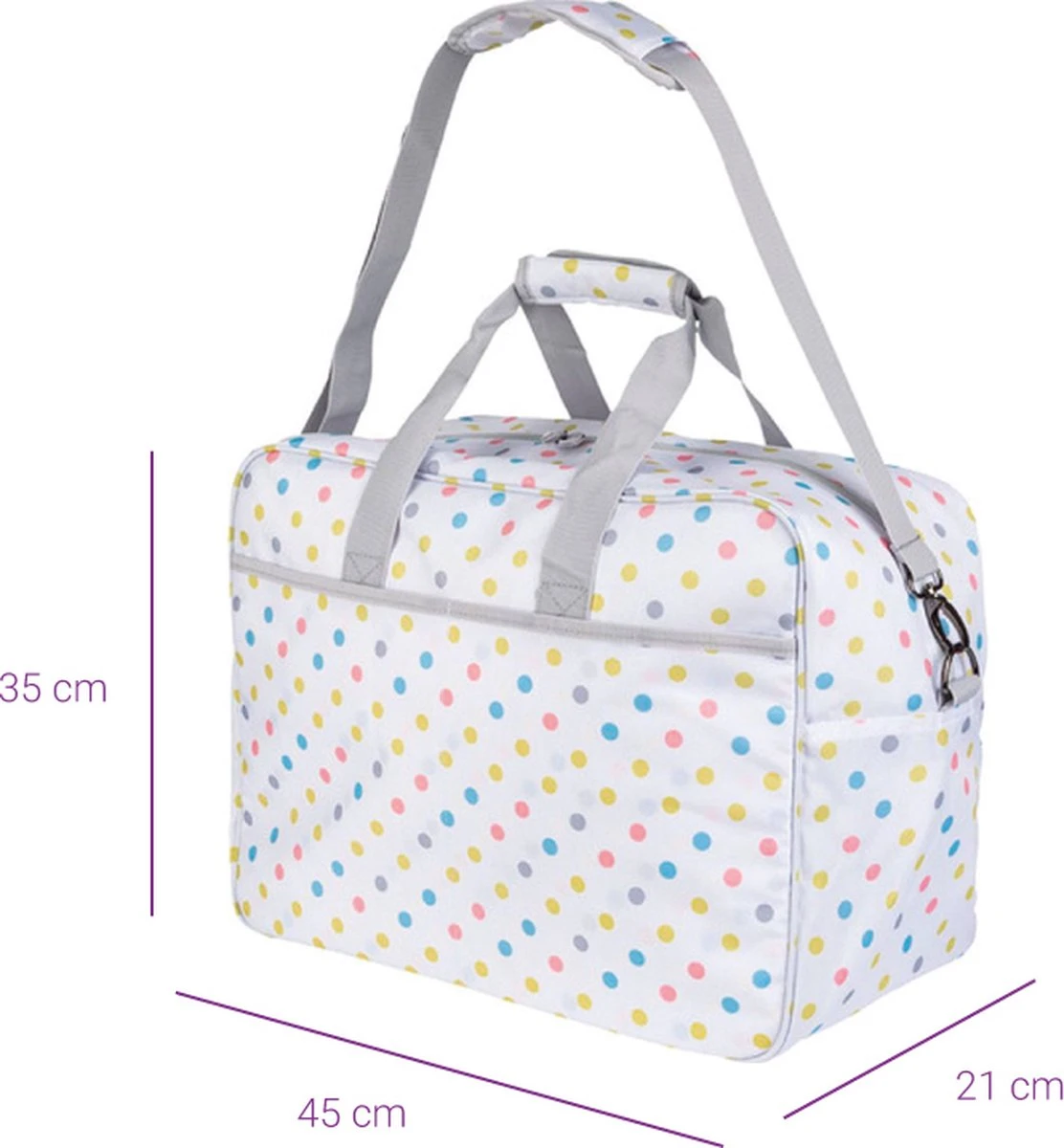 De naaimachine tas is ontworpen om gemakkelijk te dragen, met handvatten aan de bovenkant en ook een verstelbare schouderriem. Het is licht van gewicht en compact, waardoor het gemakkelijk is om het mee te nemen naar workshops, naailes, of om te reizen. Het heeft een draagkracht van 14 kg. Afmetingen: 45 x 21 x 35 cm