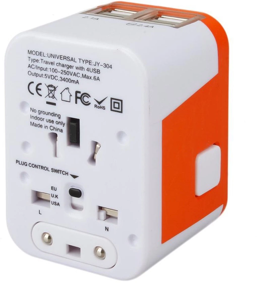 Lionheart Travel Adapter Orange-NL-4 USB Poorten-150 Landen-2.1ampère
