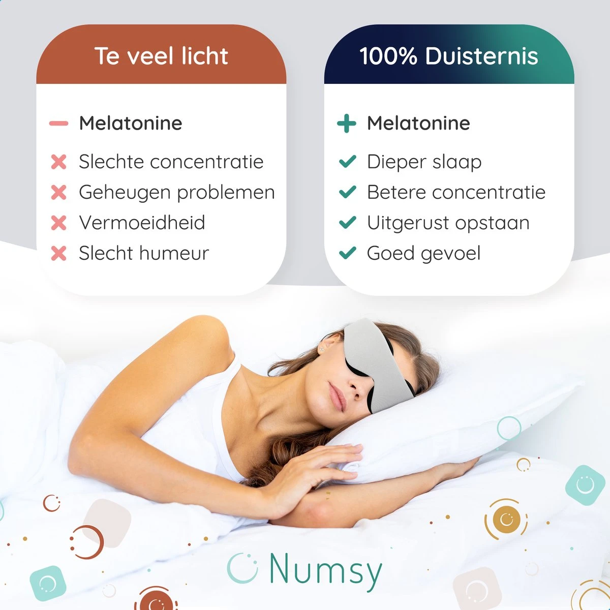 De oplossing voor een fijne nachtrust is heel dichtbij. Probeer Numsyโs unieke slaapmasker en dompel morgenavond al heerlijk weg!