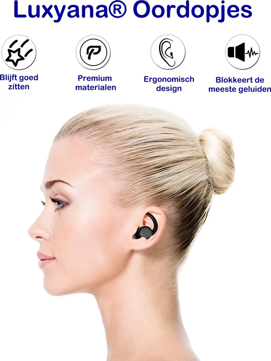 Vermijd geluidsoverlast en gun jezelf een moment van rust dankzij Luxyanaยฎ Slaap Oordopjes. Het unieke design van deze oordopjes beschermt niet alleen tegen geluid of lawaai, het geeft ook een stijlvolle look. Luxyanaยฎ Slaap Oordopjes zijn ideaal om in alle rust te slapen, studeren, je te focussen of om gewoon tot rust te komen.