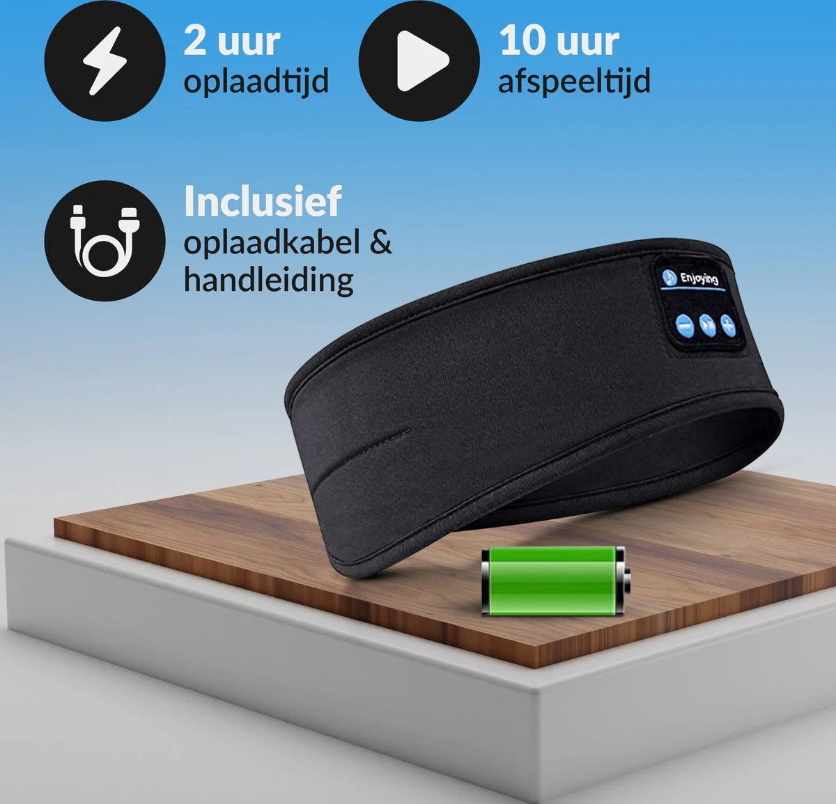 De hoofdband is voorzien van 2 luidsprekers met oplaadbare batterij. Ongeveer 2 uur opladen zorgt ervoor dat je 10 uur lang speeltijd hebt, zo heb je de hele avond muziek.