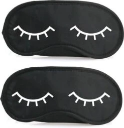 2x Slaapmaskers met slapende oogjes. Dit slaapmaskertje / oogmaskertje is gemaakt van microfiber en houdt verstorend licht tegen. Formaat: 18,5 x 9 cm, one size fits all.