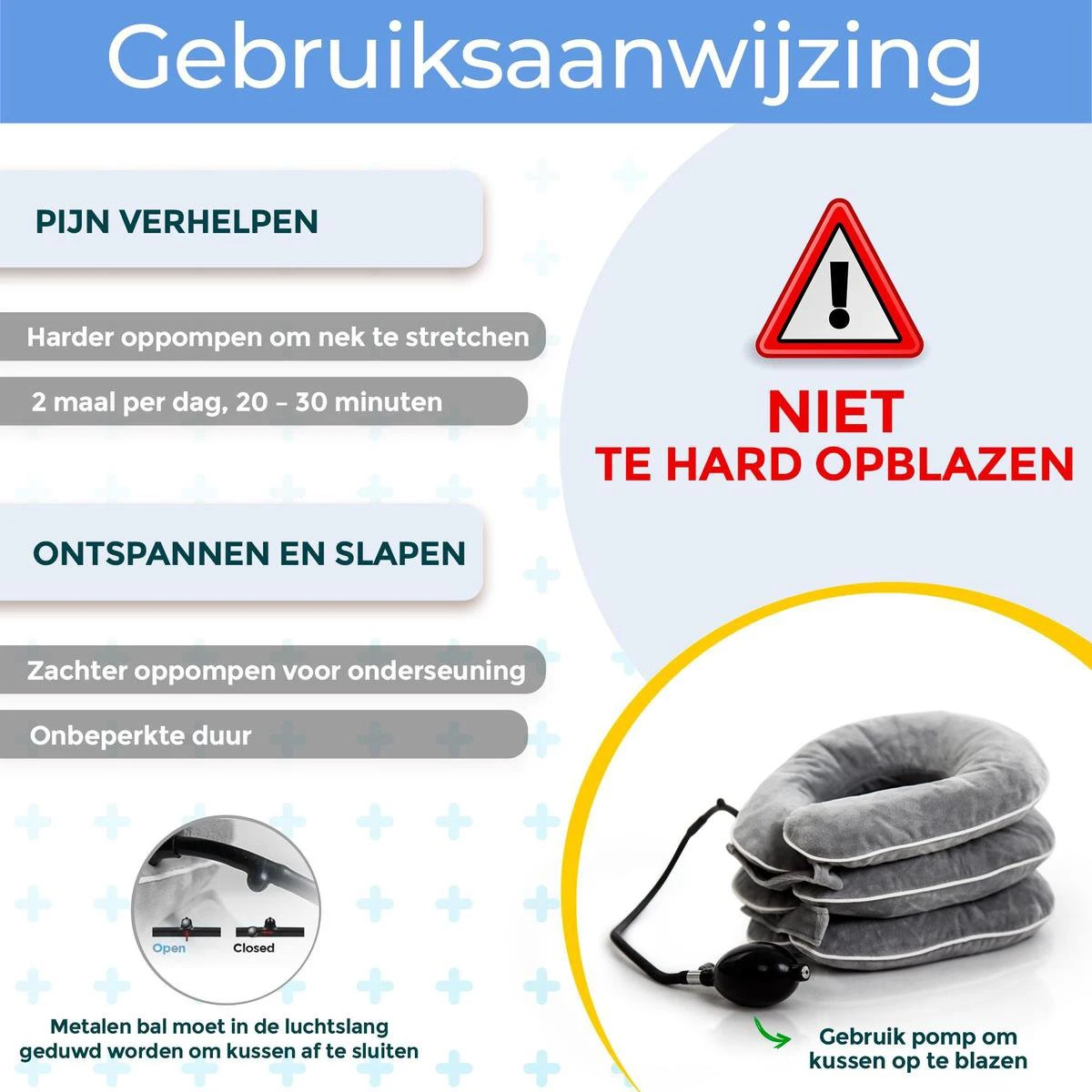 Voor het beste resultaat raden wij aan om het nek tractie kussen 2 maal per dag te gebruiken voor 15-20 minuten.