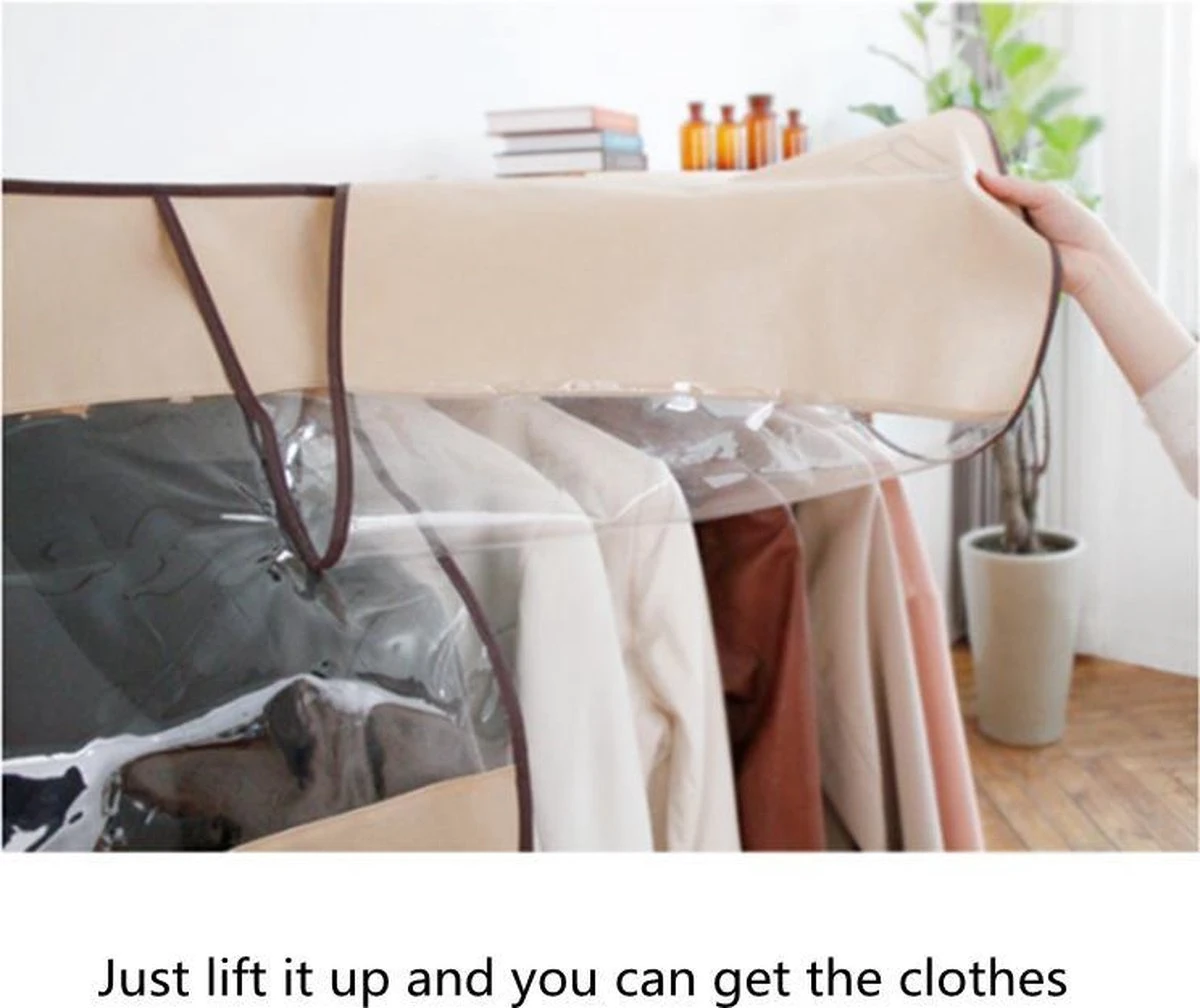 - TRANSPARANT VENSTER – Er is een zichtbaar venster aan de bovenzijde van de kledingstangafdekking. Makkelijk om het soort kleding erin te bevestigen. Handig om kleding te zoeken en uit te kiezen die u wilt.