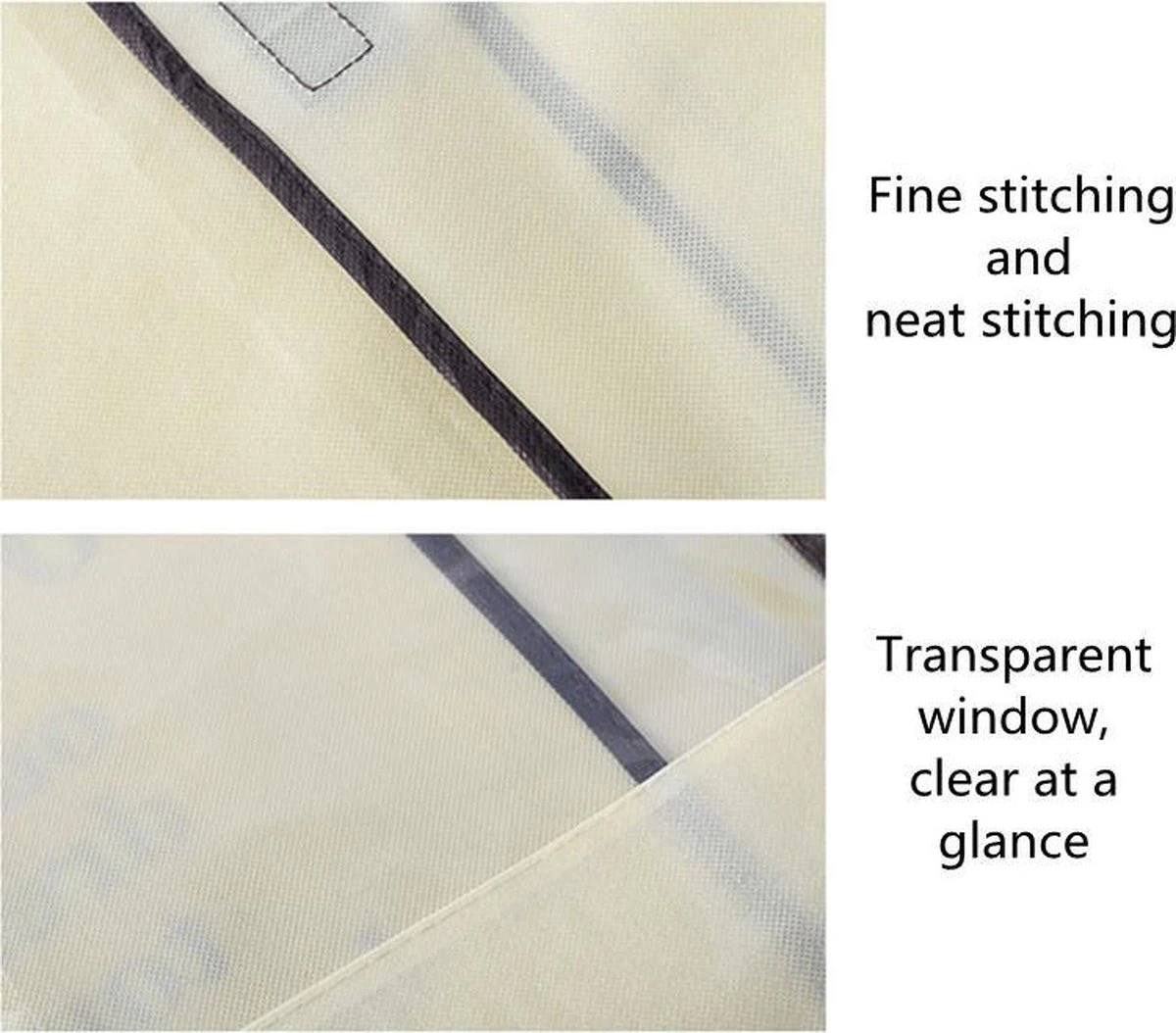- MAKKELIJK TE INSTALLEREN- Geen ingewikkelde installatieprocedure. Deze kledinghoes is supergemakkelijk te bevestigen met twee banden aan beide kanten. Hang hem direct aan de hanger. Vanwege de aard van niet-geweven stof, gelieve niet sterk te trekken.