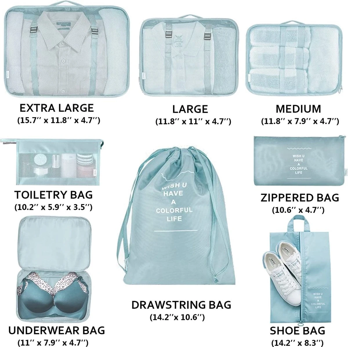 Packing Cubes Set 8-Delig – Kleding organizer voor koffers, tassen en backpack – Turquoise
